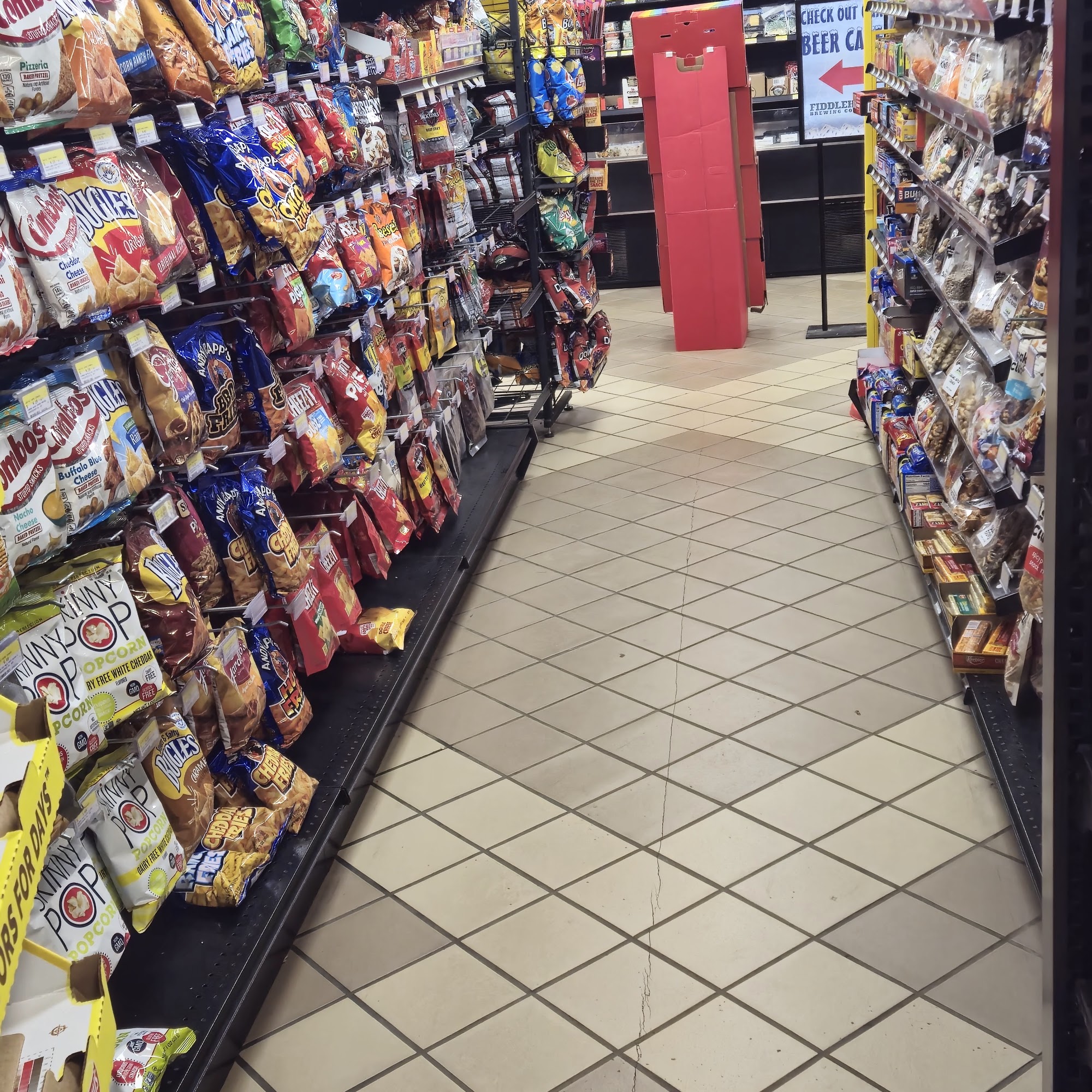 Best road stop. Ever. This store has a variety of warm, prepared foods and an assortment of beverages! They even have a self checkout!