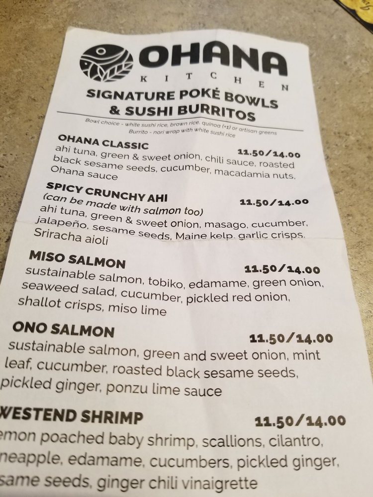 Ohana Kitchen is a restaurant that offers delicious and fresh poke bowls, as well as unique dishes like ahi tuna nachos and sushi burritos. The staff, especially in the Exeter store, is known for being friendly and making each order perfect every time. Regular customers appreciate the quick and easy ordering process, whether online or over the phone. They enjoy the fresh ingredients used in the dishes, such as rice and pineapple, which enhance the flavors of the bowls. The portions are generous for the price, and the fish in dishes like the ahi tuna nachos is plentiful. Customers also praise the great vegan options, including tofu for protein. The restaurant has a welcoming atmosphere, and the manager goes out of their way to ensure customers are satisfied. They train and assist new employees, and even during busy nights, the manager checks in with customers to ensure they are doing well. Ohana Kitchen is a solid option for a good, quick bite, and many customers order to-go. With a commitment to fresh ingredients and attentive service, it offers a delightful dining experience. The Ohana 30 sauce is noted as a game changer, making the meals even more delicious.