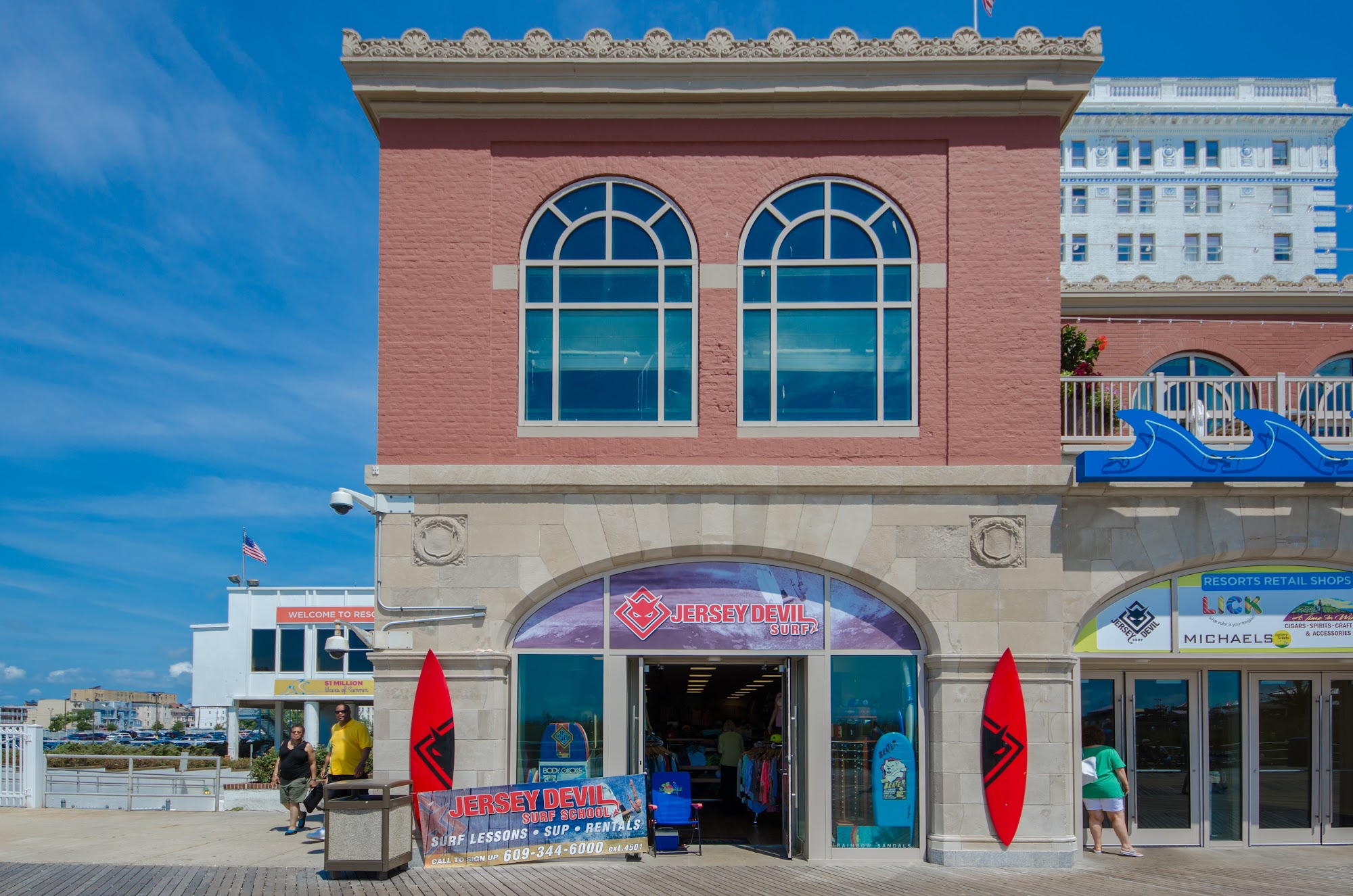 Mario was knowledgable, patient, and friendly during our surf lesson. After the hour lesson, we were able to keep the board for the day. The price was fair and the location is perfect along the AC boardwalk.