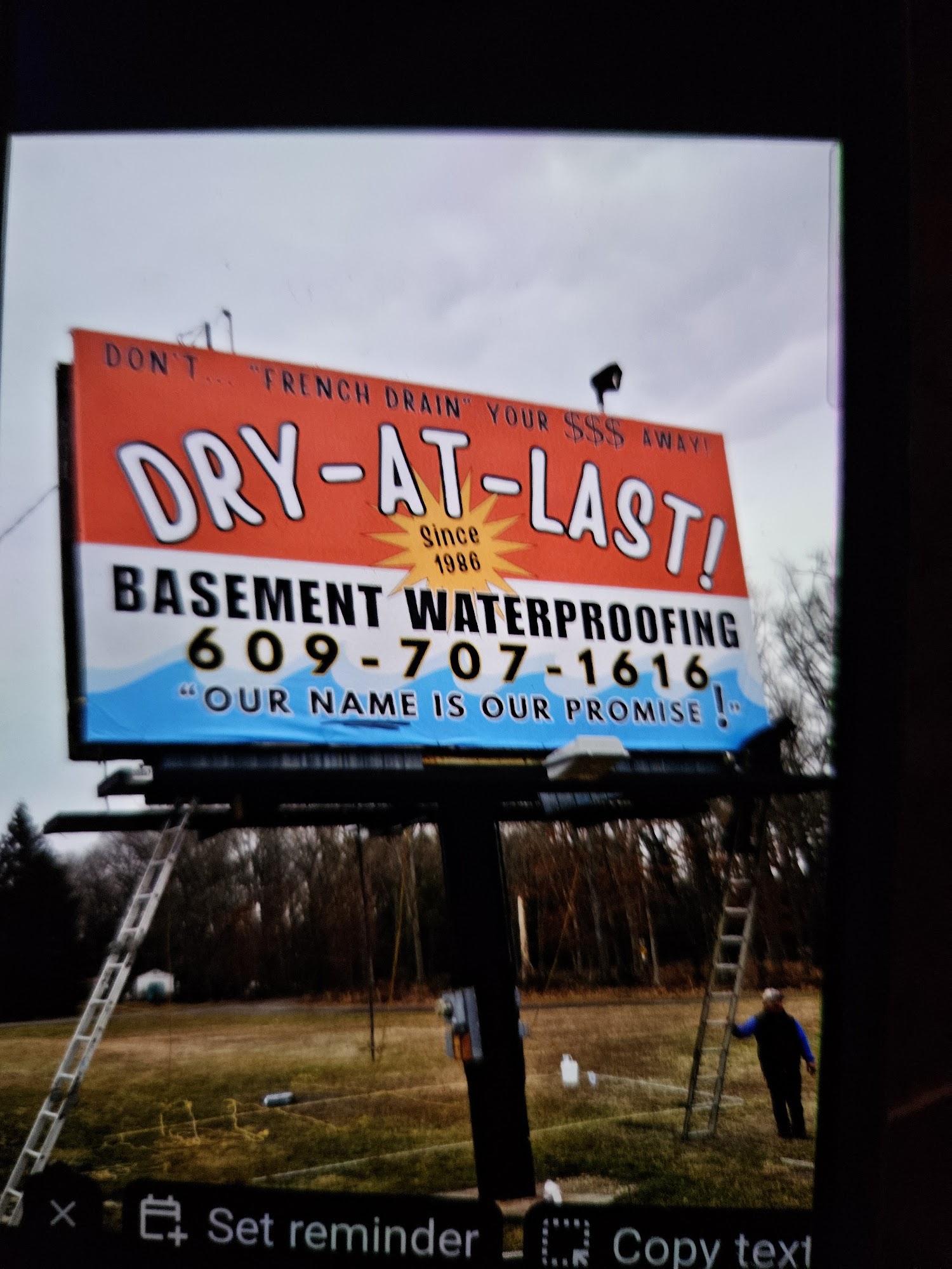 Dry-At-Last was very professional and very efficient. Everything that was promised was delivered. I would recommend them to anyone who has a wet basement.