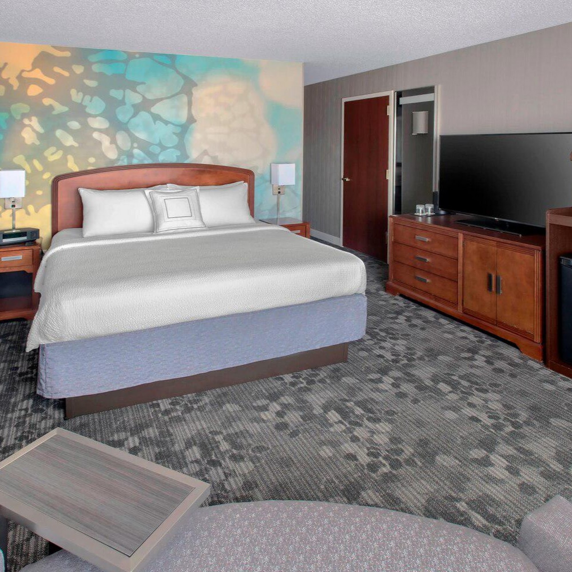 Courtyard Basking Ridge is a clean and comfortable hotel located just off the highway, making it easy to find. The rooms are generally quiet, with some traffic noise reported. The staff is friendly, accommodating, and provides excellent check-in service, with some guests noting early check-in options. The hotel is praised for its helpful events team, which assisted in organizing a wedding block and accessible shuttle services, helping to make events run smoothly. Guests also enjoy the breakfast at the bistro downstairs, although some found the coffee overpriced and not fresh. The hotel is well-maintained inside and outside, and guests appreciate the nice-sized rooms. Overall, visitors have had positive experiences, highlighting the friendly staff, clean facilities, and convenient location. The hotel is recommended for both leisure and special events.