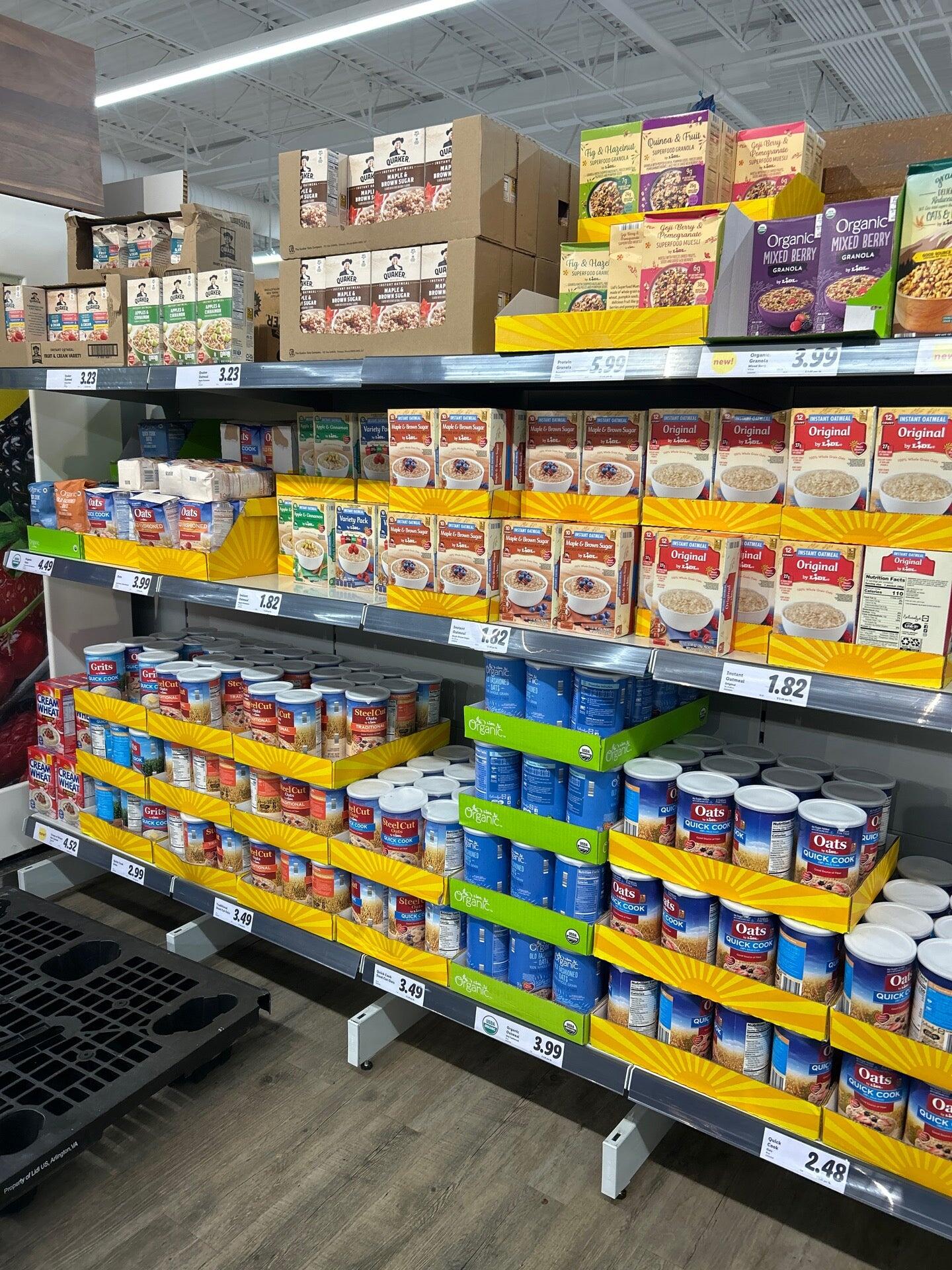 Lidl is a discount supermarket known for its unbelievably low prices and good quality products. The store offers local produce, fresh meats, imported cheeses, European pastries, and weekly surprises. Pricing is phenomenal, beating other stores on items like fruit, vegetables, and organic milk. Many find the deals and hanging baskets to be very good for the price. The bakery is good and cashiers are friendly. However, there are some drawbacks. The checkout service often has very annoying long waits, with not enough registers open. Some areas of the store can be messy and dirty, and it is not as clean as similar stores. Despite this, it is considered a well-run store that saves families money.