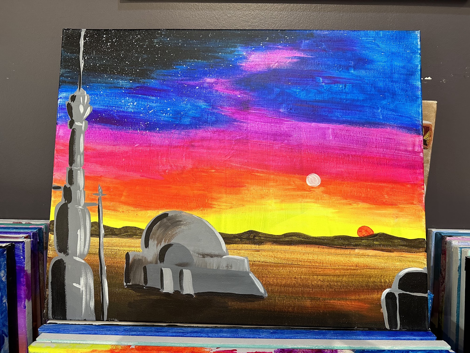 My cousin and I went here last sunday to bond and do something new. We brought our own wine while painting. We had a great time chatting with our instructor and other people who came in with us for 4:00pm sesh. We’ll definitely be going again!