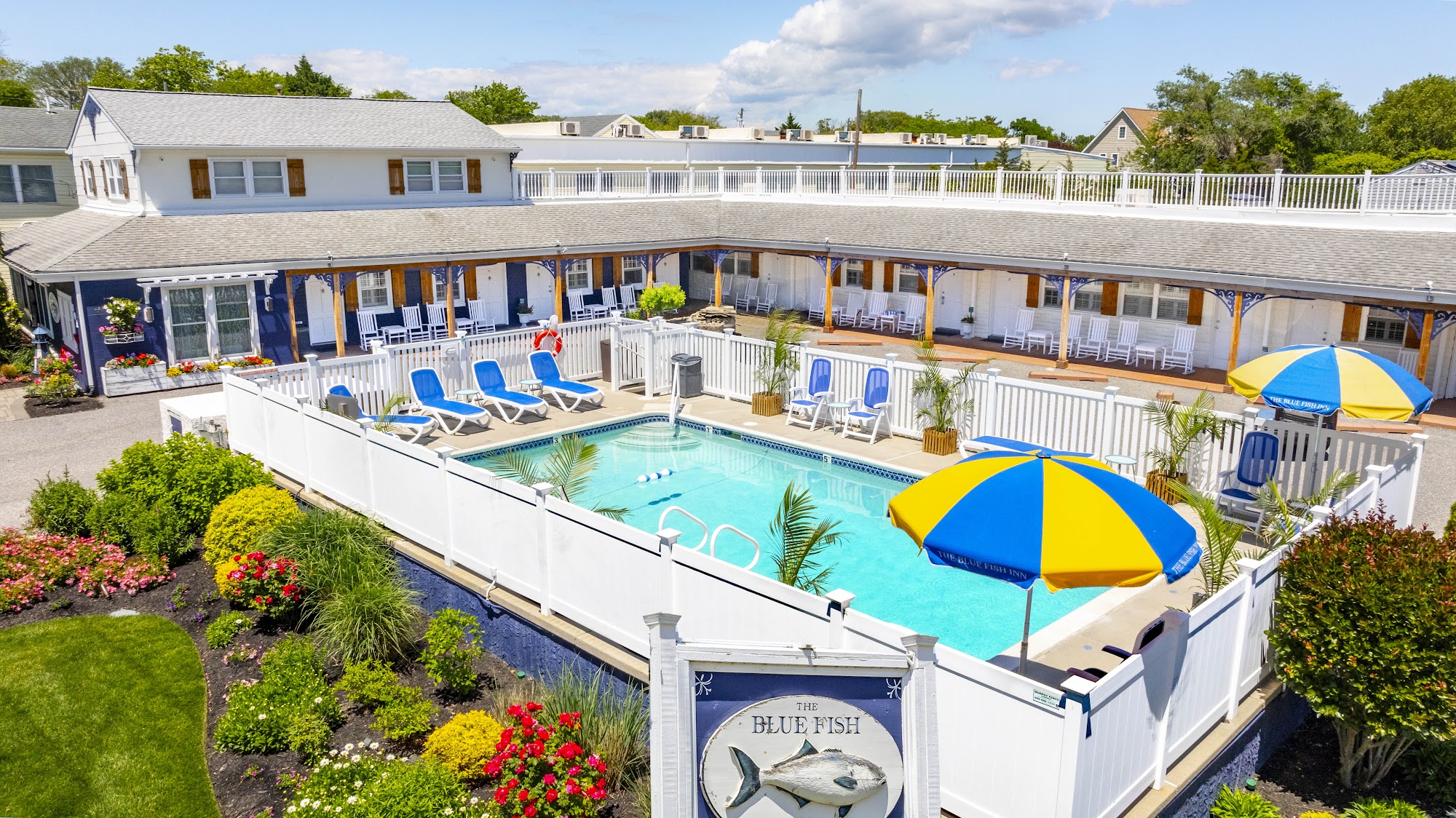 The Blue Fish Inn offers a comfortable and pleasant stay for both couples and families. Located within walking distance or a short drive to the outdoor mall, restaurants, and the beach, the inn provides a convenient and relaxing getaway. The rooms are spotless, well-maintained, and equipped with all the necessary amenities, including a daily continental breakfast. The owners are kind, friendly, and helpful, ensuring a warm welcome for all guests. The property features a refreshing pool, an outdoor shower, and a patio area with a grill, laundry facilities, and cozy seating, providing ample opportunities for relaxation. Whether you're visiting with your pets or seeking a peaceful retreat, the Blue Fish Inn is a highly recommended choice, offering an affordable and enjoyable experience in the charming town of Cape May.