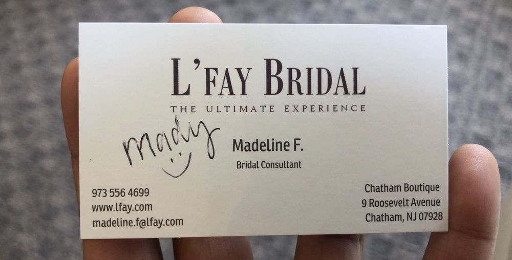 L'Fay Bridal was a wonderful experience! Our stylist was well versed in the various bridal collections. We saw lots and lots of beautiful bridal gowns and The stylist brought many of them for my daughter to try on. Highly recommend a visit to this location before making decisions for your special day!