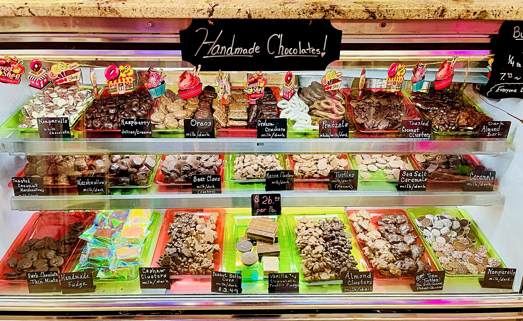 Stumbled upon this little gem and I have to say the chocolate is very tasty! I love the jelly rings and chocolate graham crackers ill definitely be coming back for more goods! Also the gentleman who works in the shop is very pleasant to chat with. If you haven't gone here go take a stroll down the alley and go in!