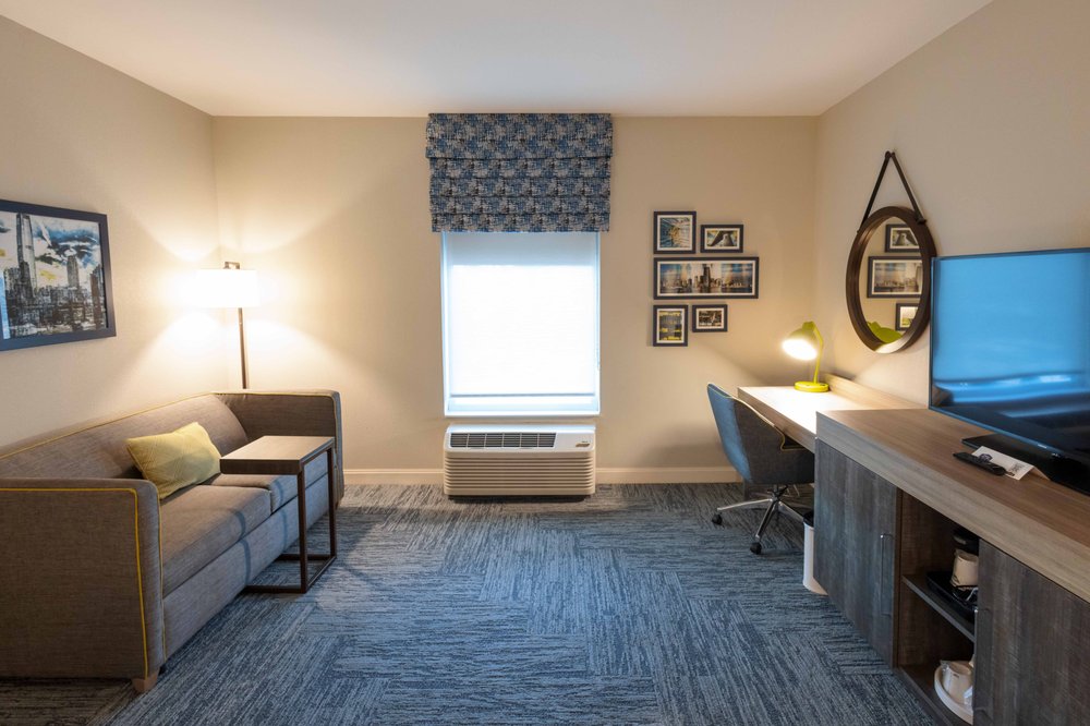 Stayed for a night on route to NY with family.Easy to find.Reception was helpful and room was clean and comfortable with coffee, microwave, fridge etc.Gym well equipped and indoor pool was fine.Somewhat limited food options within short distance but otherwise it was a great stay.