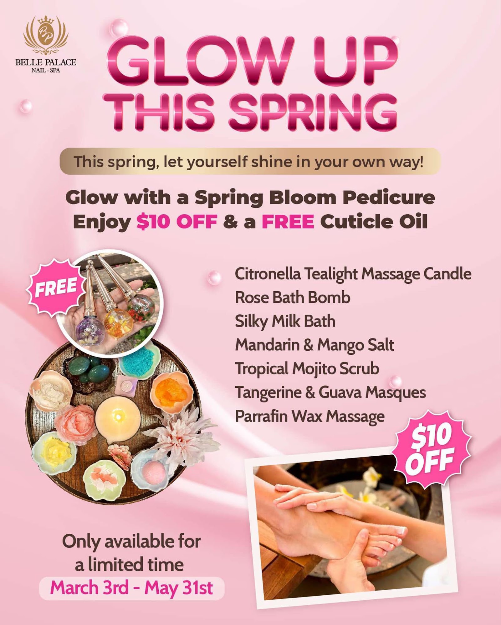 Belle Palace Nail Spa is a premier nail and beauty salon dedicated to providing high-quality nail care, spa treatments, and beauty services. With a team of skilled professionals, we focus on delivering a luxurious and relaxing experience for our customers. Our salon features a modern, elegant atmosphere where clients can enjoy premium nail artistry, spa therapies, and personalized beauty solutions. At Belle Palace Nail Spa, we prioritize hygiene, customer satisfaction, and the latest beauty trends to ensure every visit leaves you feeling refreshed and confident.