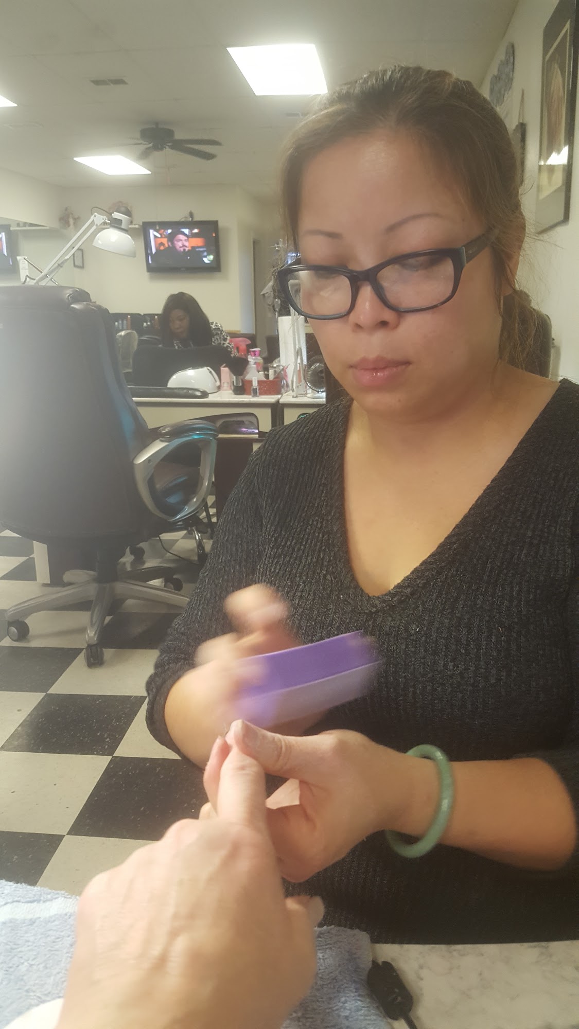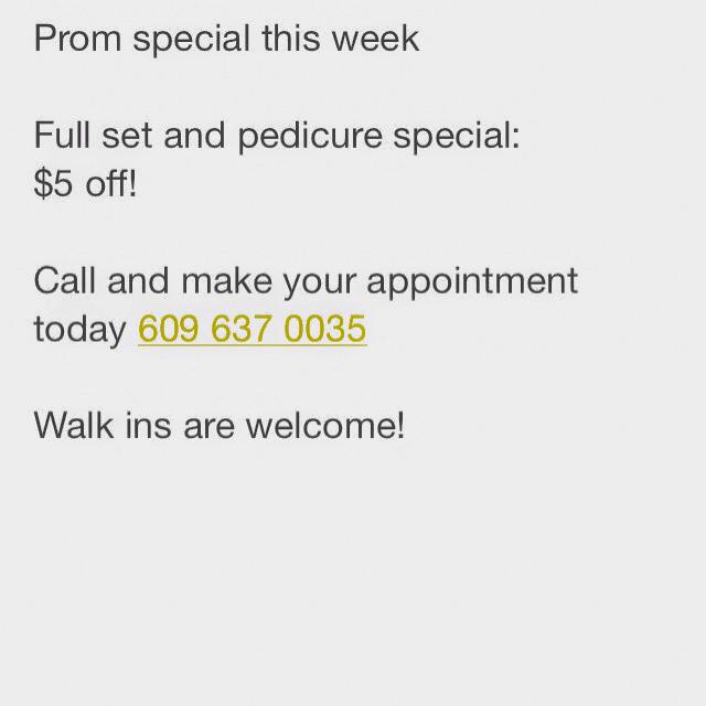 Very nice staff but it takes days to get an appointment. Hated to leave because the staff are so friendly but I need my nails done without having to wait til next week.