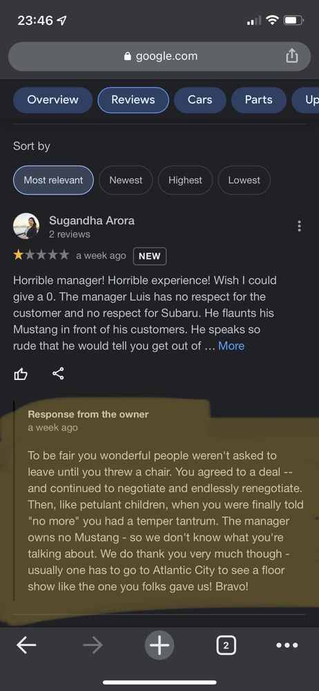 I purchased a Forester here recently from Joseph. It was a good experience, very low pressure sales. We found a better price at another dealer but we chose to buy here because the sales staff was much more professional and easier to deal with. I felt like they really wanted me to be happy in my Subaru.