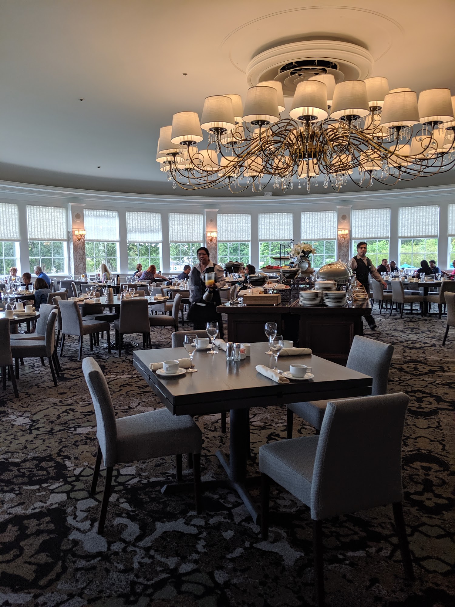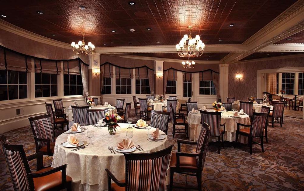 Seaview's Main Dining Room offers a pleasant meal with a very nice atmosphere. The room is beautiful, relaxed, and nicely decorated. The food is delicious and very good, with excellent clam chowder and prime rib cooked to liking, though sometimes not as requested. Service is often outstanding, fantastic, and attentive, but can feel slightly off or distracted during busy events. The experience is generally wonderful for the whole family, though some find the breakfast menu lacking charm and note a musty hotel odor. Parking is very difficult.