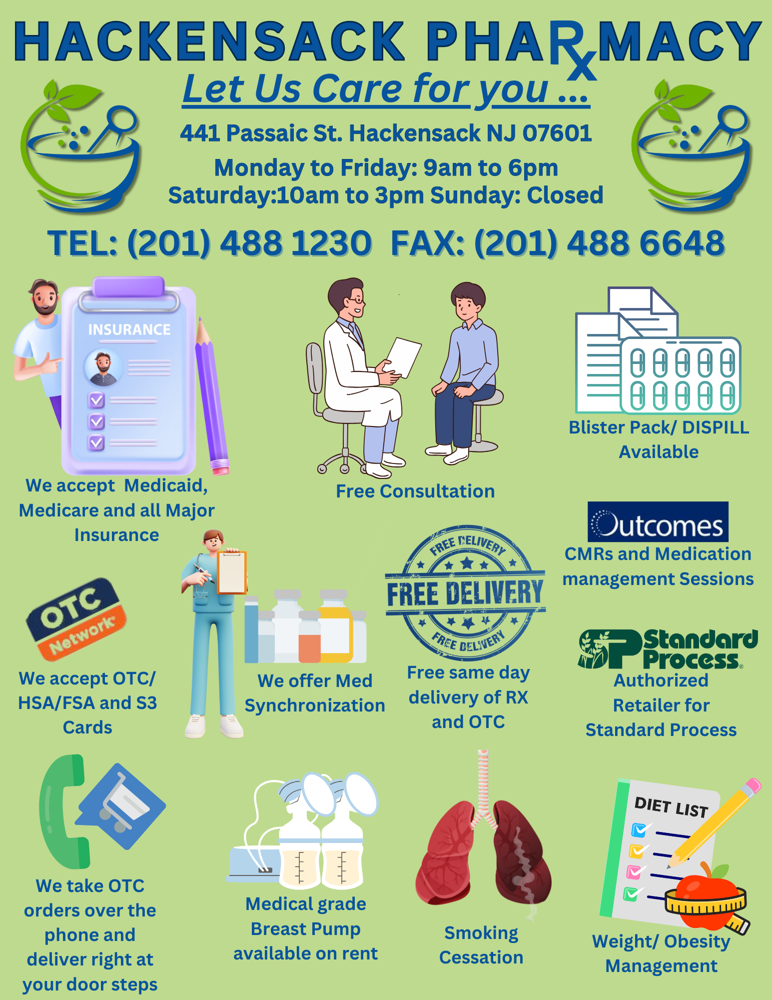 Hackensack Pharmacy is known for its outstanding customer service and quick, convenient medication access. Many customers have praised the pharmacy for its professional and courteous atmosphere, which has made them return for years. First-time visitors are often amazed by the helpful staff and prompt service, receiving prescriptions in just minutes. The pharmacy stands out among larger drug stores by fostering personal relationships with customers and providing tailored support, especially for those managing chronic illnesses. With a commitment to being accommodating and knowledgeable, Hackensack Pharmacy is highly recommended for anyone seeking a caring and reliable pharmacy experience.