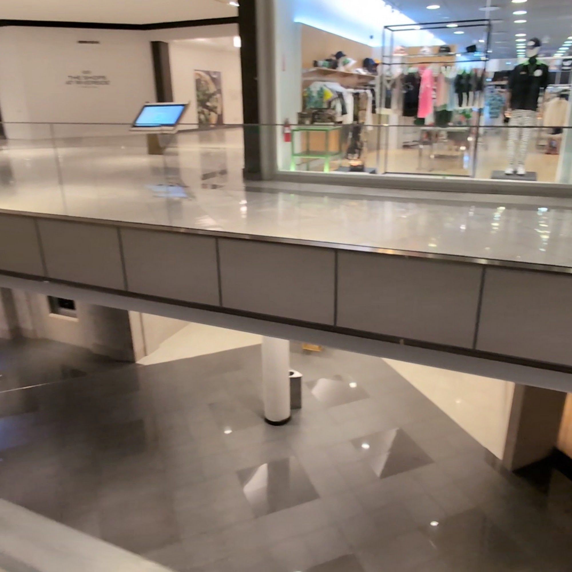 The Shops at Riverside is a beautiful, sophisticated, and charming mall with a modern feel. It is a world-class luxury shopping destination featuring an unrivaled collection of high-end and brand name stores. The mall also offers dining at great restaurants, a wonderful movie theater, and convenient amenities like car charging. It is known for being quiet, relaxing, and not a typical bargain shopping center. While the main mall doors close early and it is closed on Sundays, several restaurants, the theater, and other services remain open.
