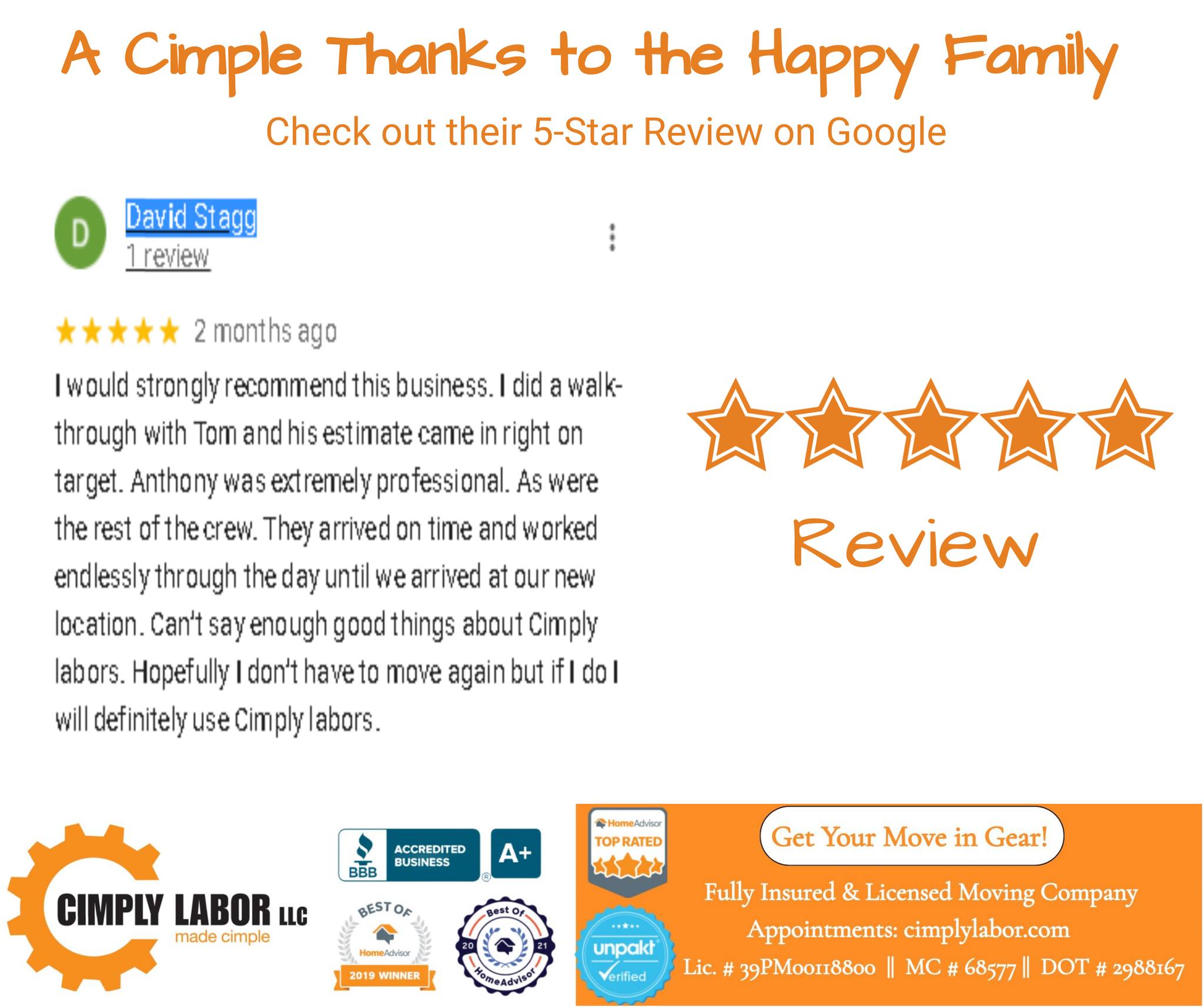Cimply Labor is a New Jersey-based moving company that strives to provide the best moving experience at reasonable prices. They offer free estimates, in-person or virtual face-to-face meetings, out-of-state moves, professional packing services, disassembly and reassembly of furniture, storage container loading and unloading, multiple moving options to fit your budget, and are licensed and insured with a uniformed crew. Customers have praised Cimply Labor for their excellent service, communicative and friendly staff, efficient and well-trained movers, and attention to detail. The company has received positive reviews for their professionalism, responsiveness, and ability to accommodate schedule changes. Clients have highlighted the care taken with their belongings and the overall success of their moves, whether it was a local or long-distance relocation.
