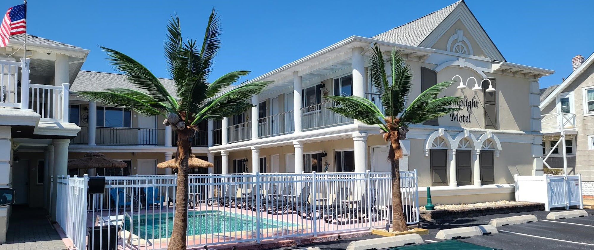 The Lamplight Motel is a wonderful and cute gem in the heart of the Jersey Shore. Guests describe an absolutely wonderful, awesome, and perfect stay. The location is perfect, close to restaurants and shops, and just one block from the beach. The hotel is super clean, with immaculately clean rooms. The staff is friendly, accommodating, amazing, wonderful, and polite. Amenities include a wonderful heated pool, a small pool, a nice roof terrace, and keyless entry for easy check-in. Rooms are perfectly sized and have a microwave, refrigerator, and blow dryer. Some guests noted the bed is a bit firm and that rooms near the office or on the first floor can hear noise from doors or people above. Despite this, visitors definitely recommend staying here, are already making plans to return, and will be recommending it to others.