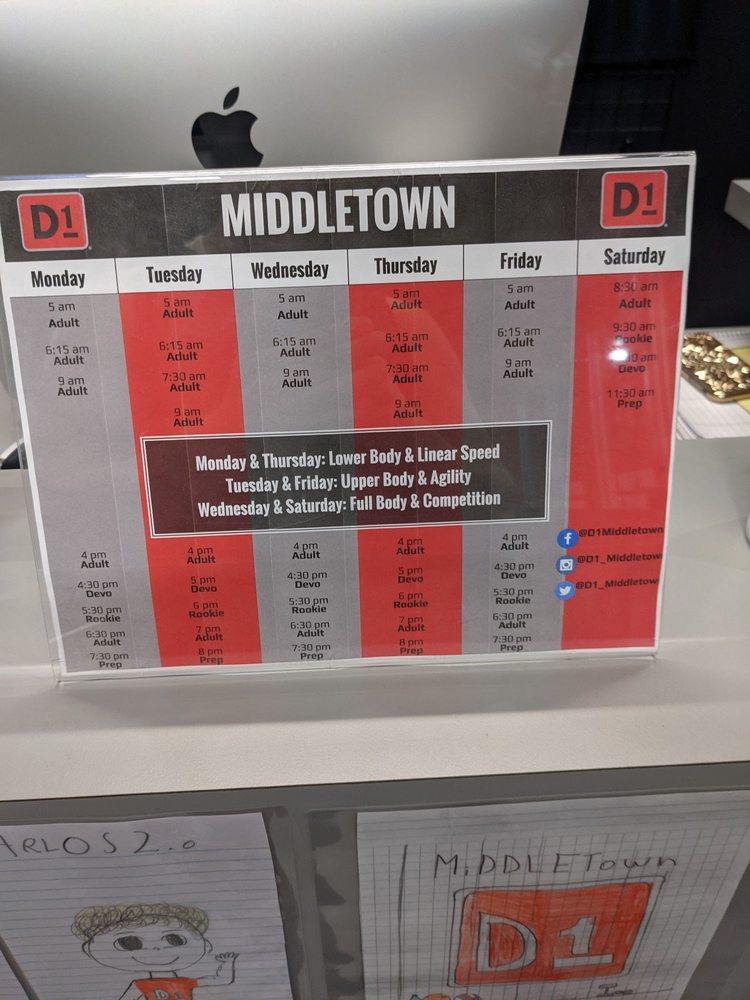 D1 Training Middletown is an athletic-based training facility dedicated to delivering results through effective programs and expert coaching. It caters to a wide range of individuals, from beginners aiming to lose weight to collegiate athletes aspiring to go pro. The facility offers age-appropriate programs that help clients achieve their fitness goals. Many reviews highlight the welcoming environment and supportive staff. Coaches like Carlos and Greg are praised for their ability to motivate and engage clients, making workouts enjoyable and effective. The owner, Ed, is noted for being friendly and present, contributing to the positive atmosphere. Clients appreciate the flexibility of classes held six days a week, allowing them to choose convenient times. The training at D1 includes strength, speed, agility, and injury rehabilitation. Reviewers mention the knowledgeable trainers who take the time to explain workouts and provide personalized support. The variety of workouts keeps clients engaged, leading to increased enthusiasm for training. Overall, D1 Training Middletown is recognized as a premier choice for those looking to enhance their athletic performance and achieve their fitness goals. Clients consistently express excitement about returning for more classes.