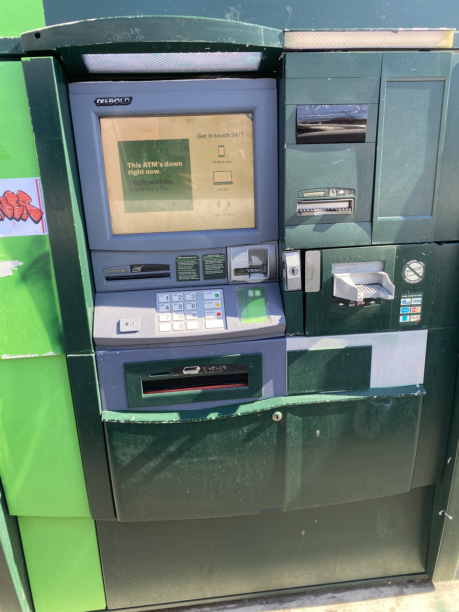 TD Bank, America's Most Convenient Bank, is one of the 10 largest banks in the U.S., providing more than 8 million customers with a full range of banking services at over 1,200 locations. The bank offers retail, small business, and commercial banking products, as well as customized private banking and wealth management services. TD Bank is headquartered in Cherry Hill, N.J. Customers generally have a positive experience at TD Bank, with the staff being described as polite, knowledgeable, and professional. However, some customers have expressed frustration with the bank's ATM accessibility, as the ATM area is often deadbolted after hours, making it inconvenient for customers. Additionally, some branches can get crowded, and there have been issues with the odor inside due to outdated carpeting and the external ATM being broken at times.