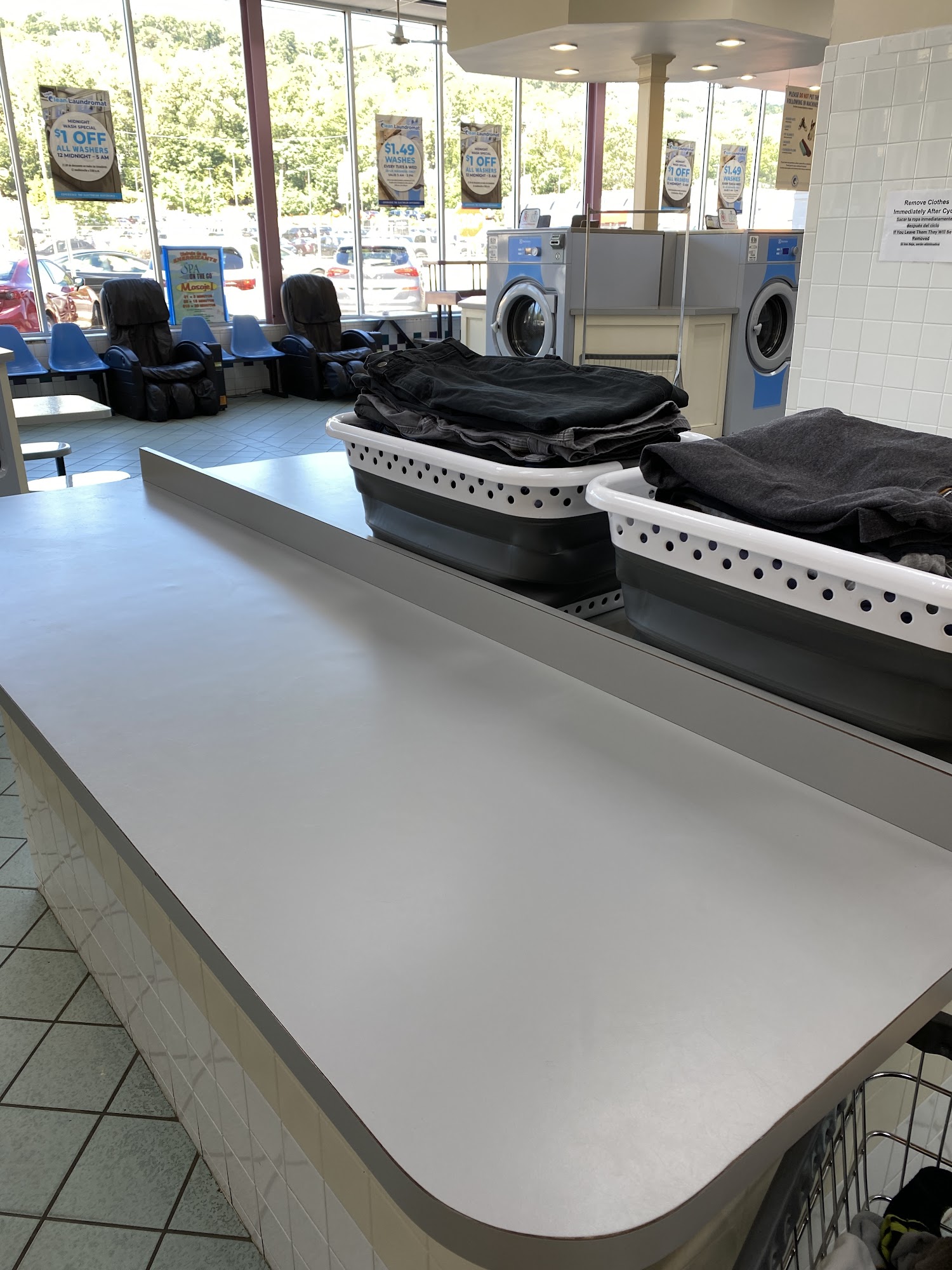 Alittle cluttered in the center with I'm guessing drop off laundry. But definitely affordable and good machines