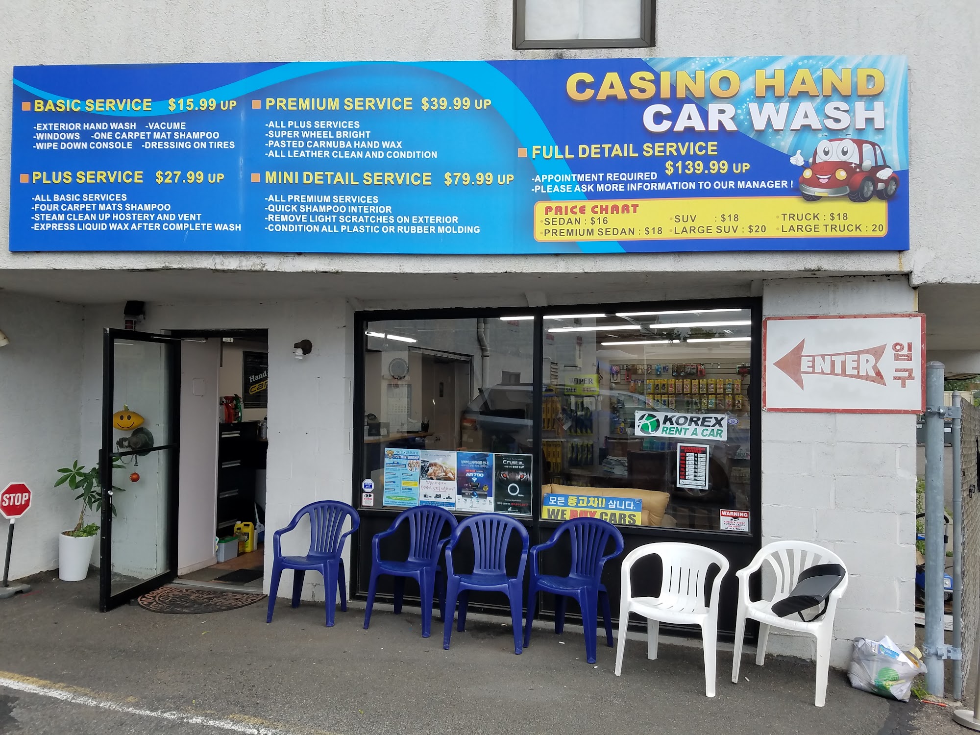 Casino Hand Car Wash and Detailing is the best car wash in the area. The employees are honest workers who do not steal and are really kind. They do a very good, thorough, and fantastic job, taking great care of your car. The service is very, very good, with windows cleaned very well inside and out and excellent vacuuming. They can also remove scratches. The owner is always nice and super understanding. Besides the car wash, they do NJ DMV related work like registrations, titles, and license plates. They do not charge much. It is an absolutely amazing place where you will never be disappointed.