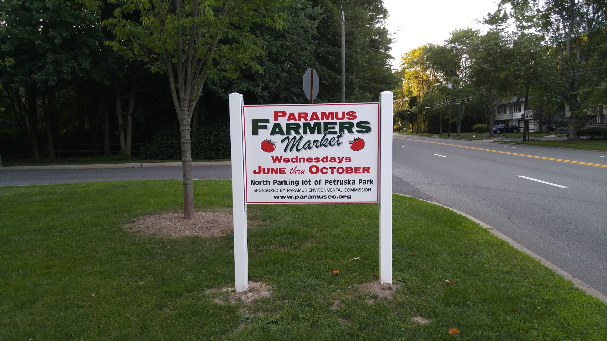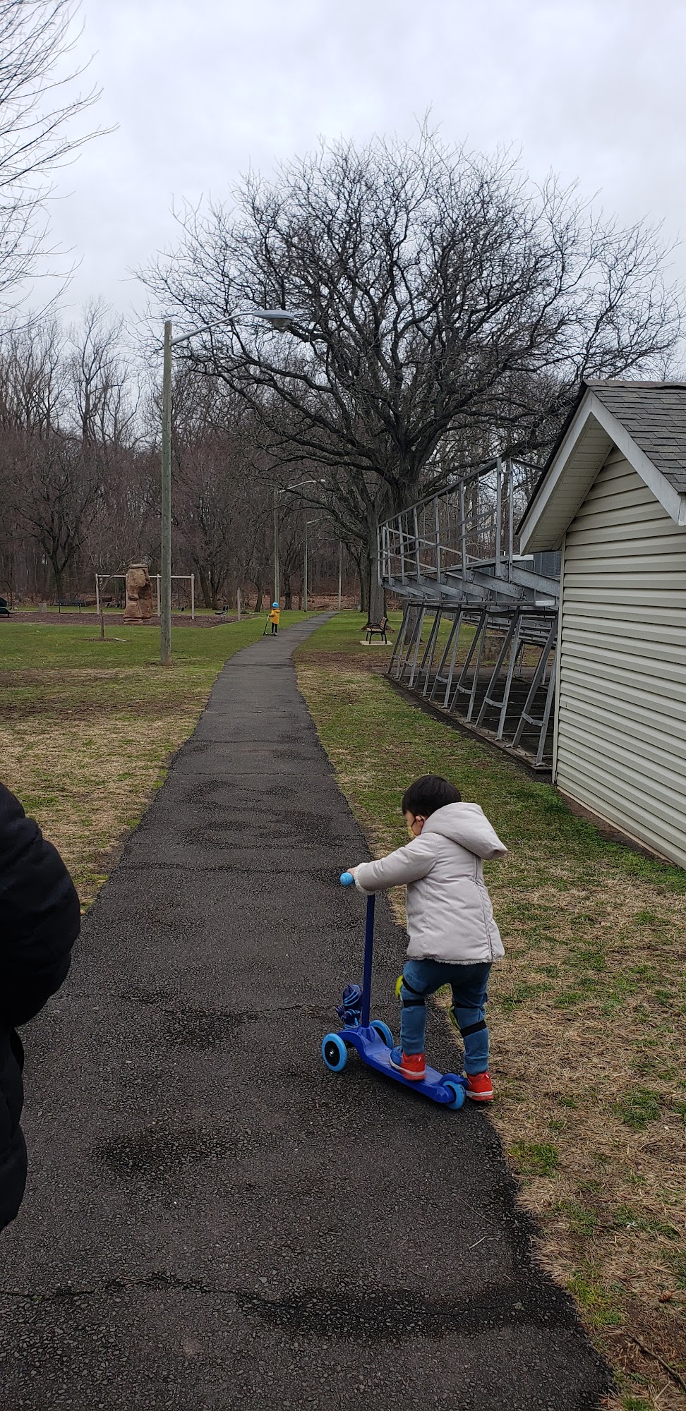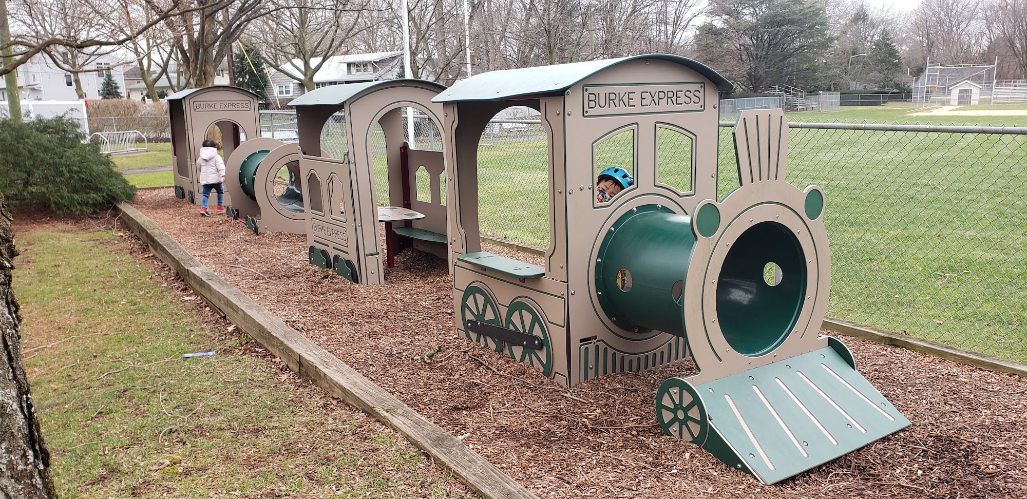 Paved walking path, basketball court outdoor hockey rink, playground, baseball field, picnic tables.