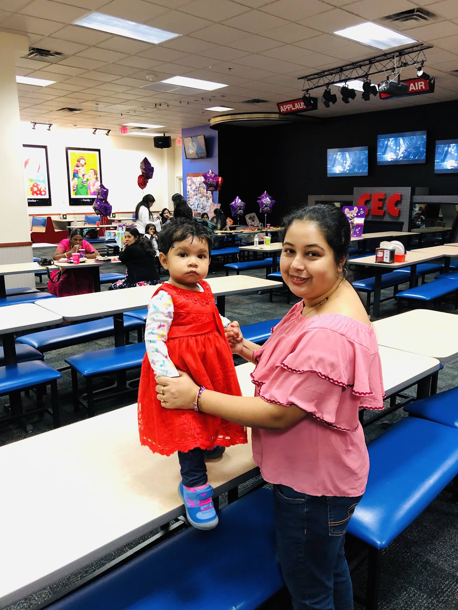 Great plaza, jewelry shop, Macys furniture, Chuck E. Cheese, dollar deals, cruise planner, furniture store, mantra, and many hair/skin/nail upstairs. Great parking lots of spaces.