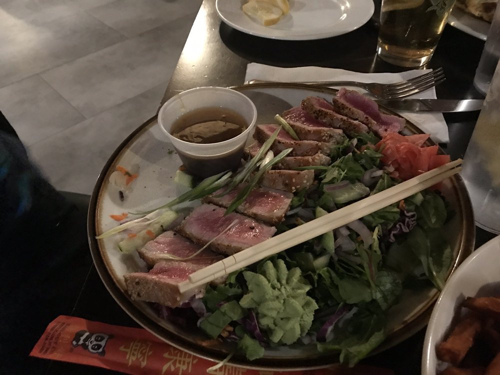 Food is always good here.I have been coming to Peppercorns for years and I don't know what happened here???I can't believe how aggressive their waitress and bartender are.I understand it was a busy night unfortunately they were really rude.They don't know how to deal with customers.Their attitude was very bad