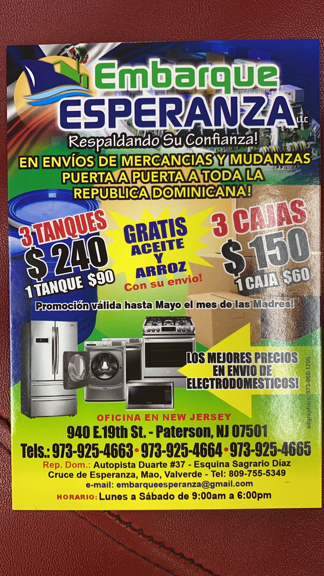 Embarque Esperanza LLC provides excellent and efficient shipping services. Customers report fast delivery, often within two weeks, with boxes arriving perfectly and intact. The service is described as responsible, safe, and punctual, with items received exactly as they were sent. Employees in both New Jersey and the Dominican Republic are noted for their excellent service, good attitude, great respect, and care. The company is friendly and handles packing securely. Many families use and recommend the service with complete confidence, praising the incredibly cheap prices and the fact that everything arrives at the stipulated time. The business is consistently rated highly and is 100% recommended.