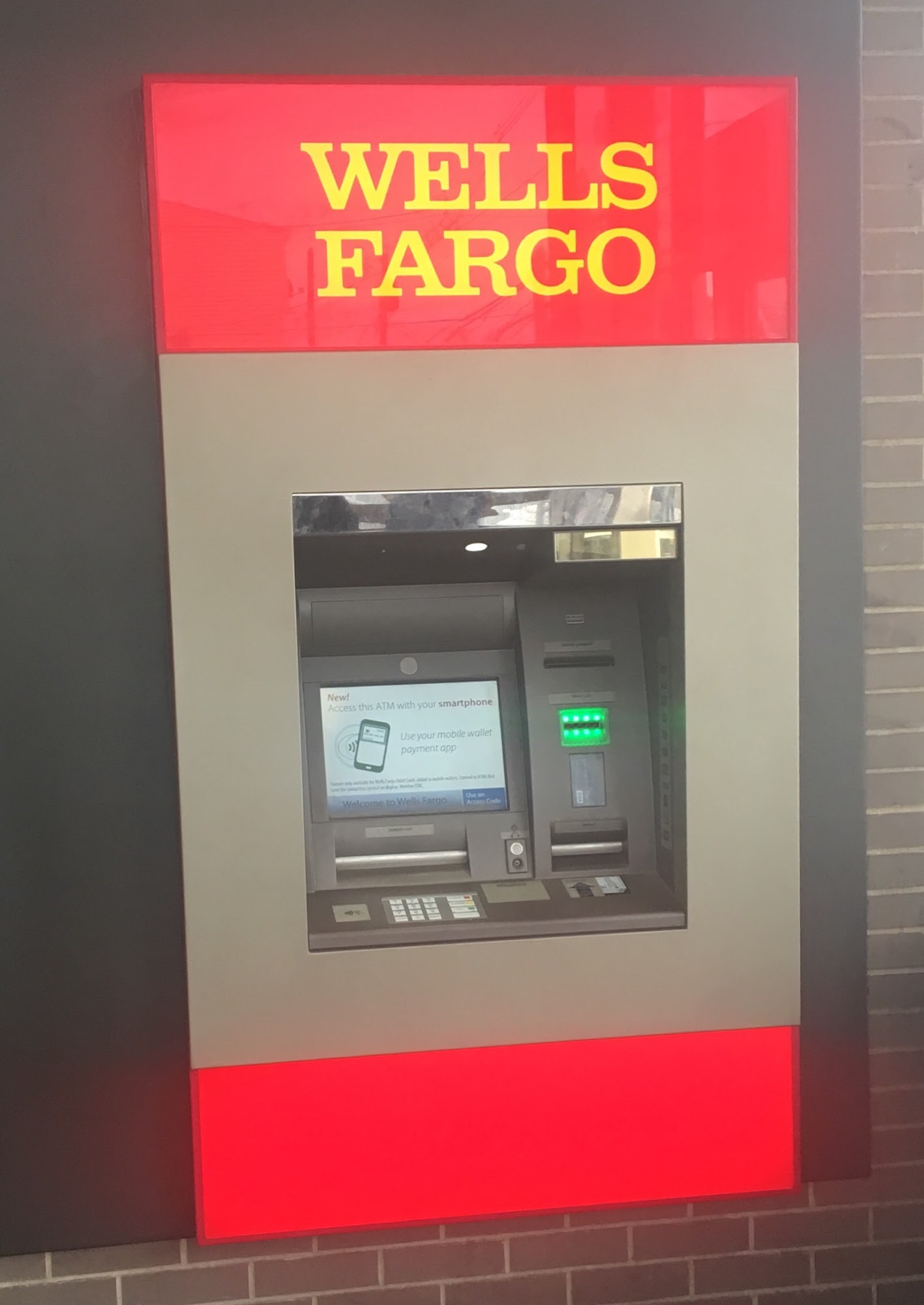 The card reader to enter the bank wasn't working properly. If you didn't hold on to the card it would have swallowed your card. We've tried many times however, we eventually just tapped the card by the chip side and it finally went through. There's only two ATM's inside but clean.