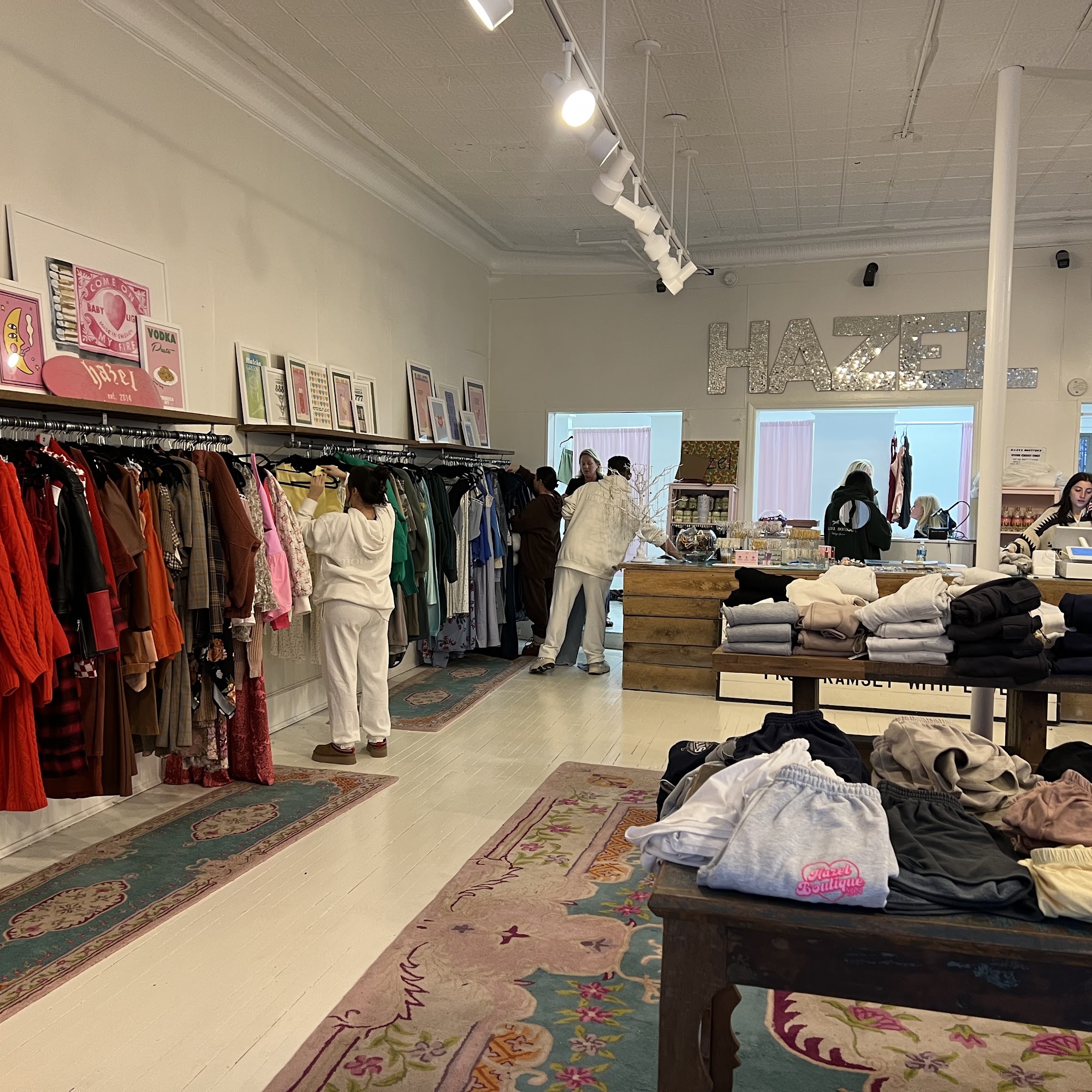 Hazel Boutique is a popular and friendly store loved by many, especially teens. The staff is helpful, kind, and always willing to go above and beyond to assist customers. The store is well-organized and offers a good shopping experience, with a variety of trendy items like sweatshirts, sweatpants, and accessories. Customers appreciate the welcoming environment and the friendly staff members who make shopping enjoyable. The store also features a cute yellow dog that serves as a friendly mascot, adding to the warm atmosphere. While the prices for some items, such as sweatshirts with the store’s name, are considered high by some, many shoppers continue to visit regularly for gifts or personal items. Overall, Hazel Boutique is known for its great service, inviting environment, and popular trendy clothing, making it a favorite spot for those looking for stylish finds and friendly service.