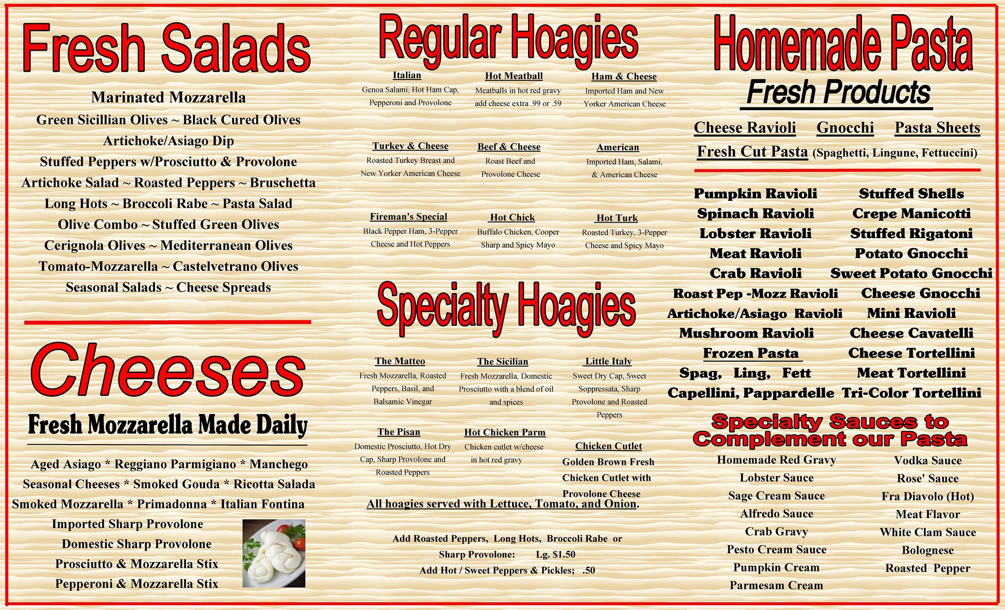 Best of everything homemadeImported block extra sharp provolone was the best graded over their home made pasta..hogies far none were the best I ever had..you must try this place...5 stars ★★★★★