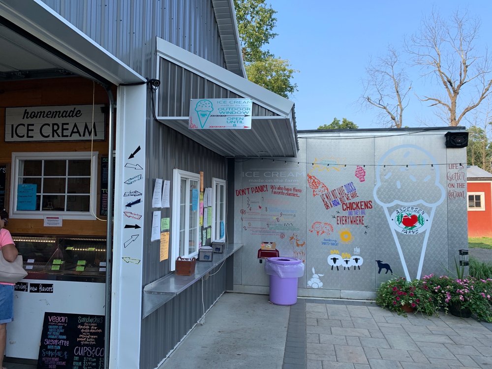 Andersen Farms is a gem of a place, offering a wide range of fresh produce, baked goods, and specialty items. The farm store is well-stocked with homemade treats, including delicious apple cider donuts, pumpkin bread, and oatmeal cookies. The selection of jams, jellies, and locally sourced meats is impressive, and the staff is friendly and welcoming. The farm itself is a treat, featuring fresh vegetables, pumpkins, flowers, and live plants of many types. There are also goats, sheep, and chickens to observe, making it a fun experience for families. The prices are reasonable, making it a great destination for families, couples, and individuals. Visitors can enjoy delicious ice cream, especially the chocolate flavors, along with unique gifts and cute kitchen wares. For kids, there is play equipment to run off the sugar after enjoying ice cream, making it a must-visit destination.