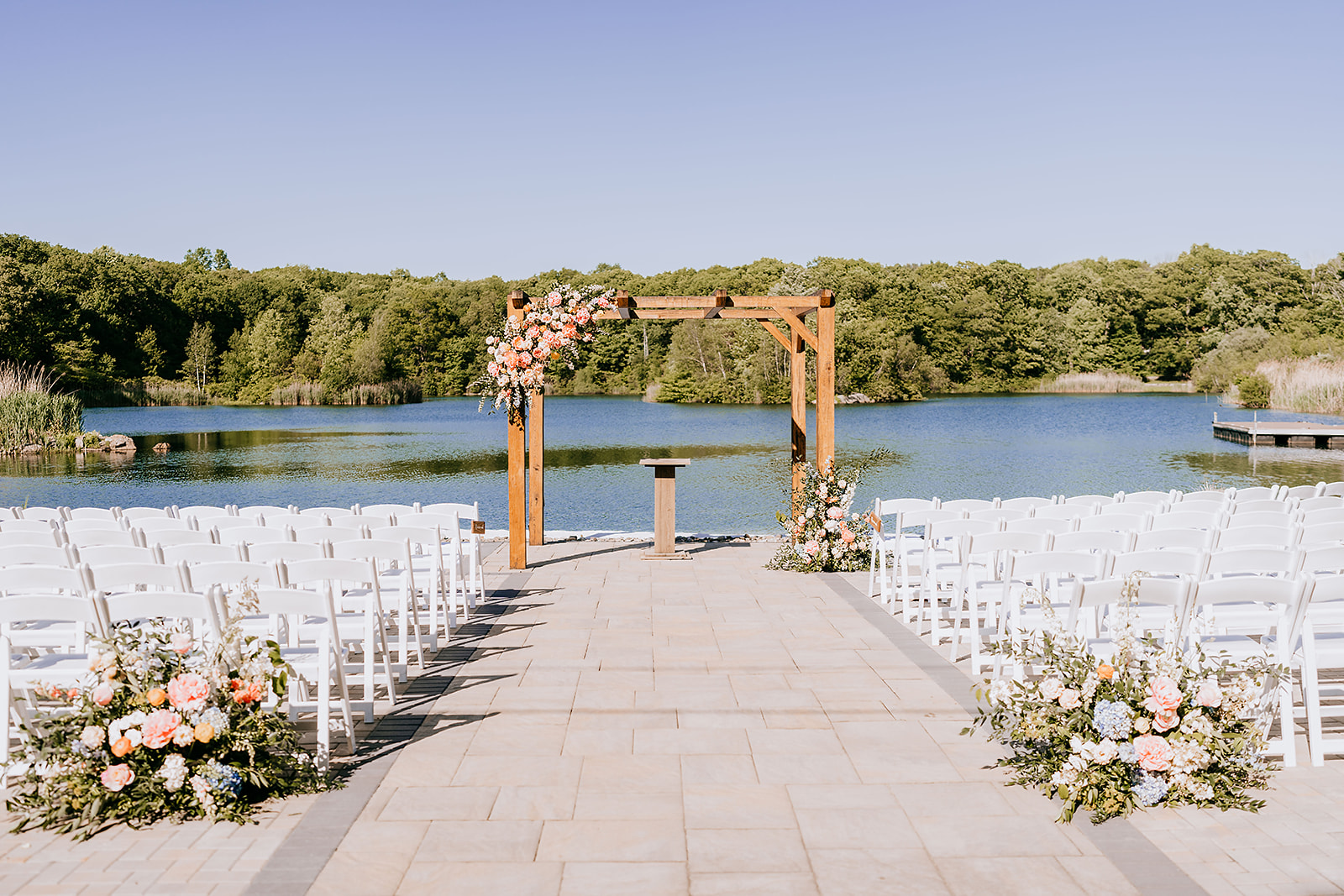 Rock Island Lake Club is a lakeside wedding venue located in northwestern New Jersey. We host only one wedding per day ensuring that your day runs smoothly. The venue has everything you need onsite for an unforgettable wedding day including two getting ready suites, three ceremony spaces, a 90-minute cocktail hour, and a reception complete with 5 entree choices and a top shelf open bar.