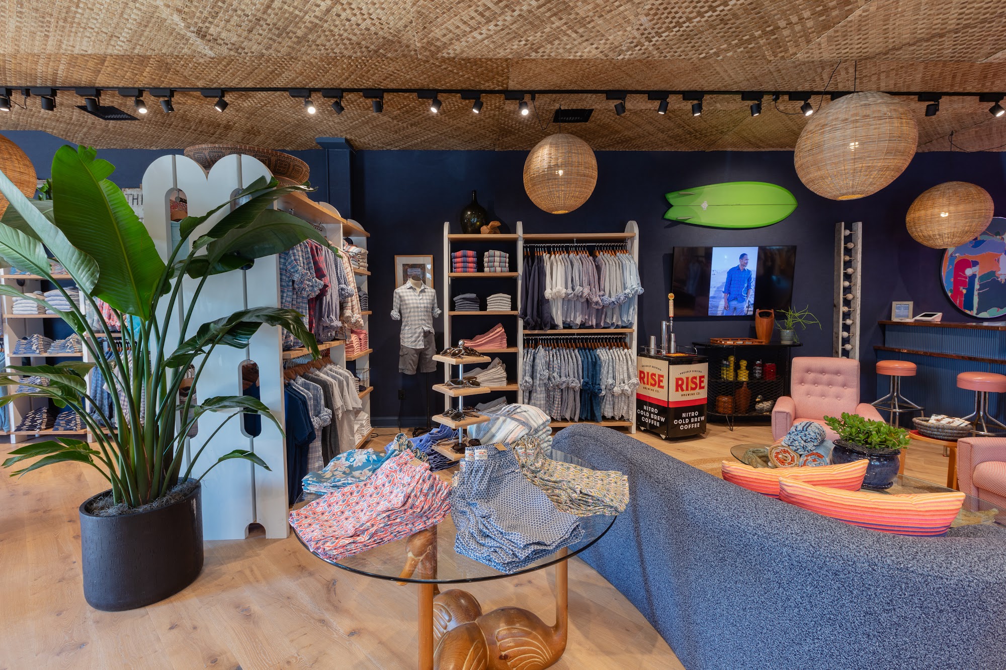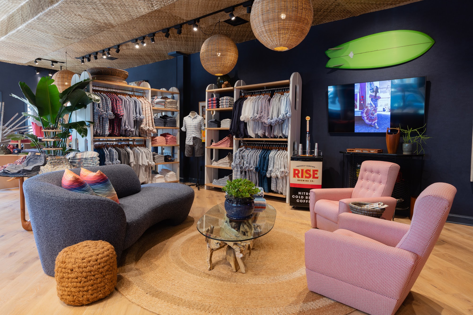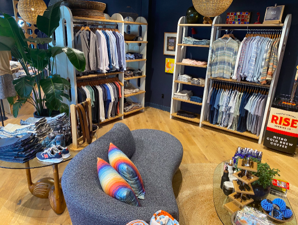 Faherty Spring Lake is a family-led brand offering high-quality products with good style and fit. The store provides a pleasant shopping experience with helpful and intuitive staff. It also hosts community events like free, relaxing yoga classes for all levels in its cool venue, creating a welcoming atmosphere. The brand is built on spreading good vibes and making things better.
