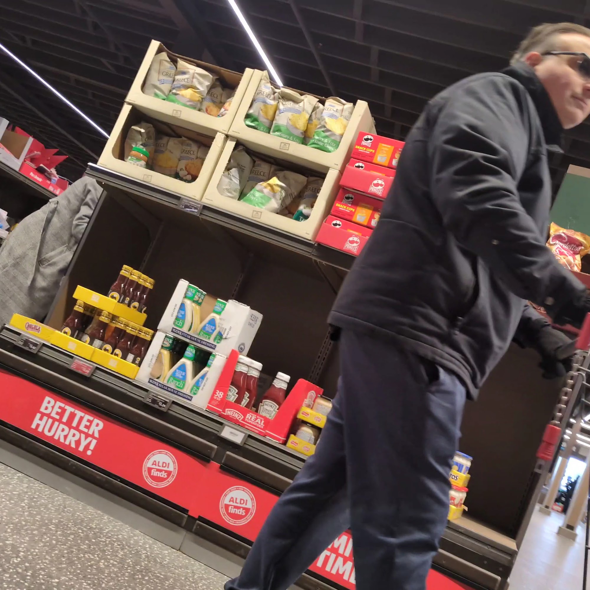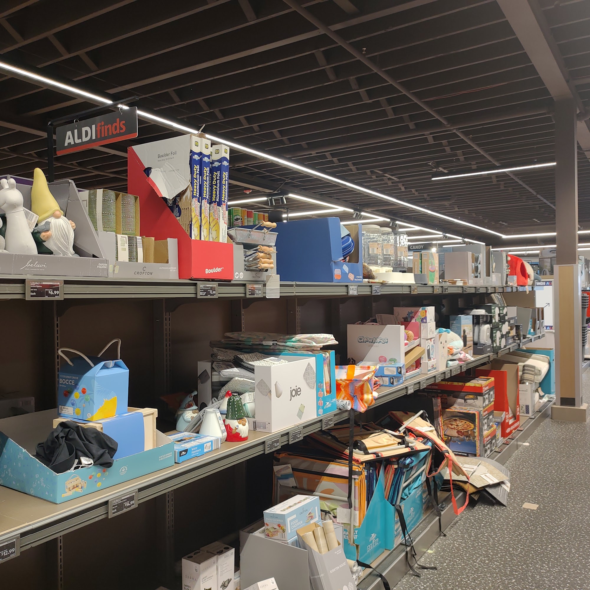 The lighting in Aldi's is calm and makes for a great shopping experience.