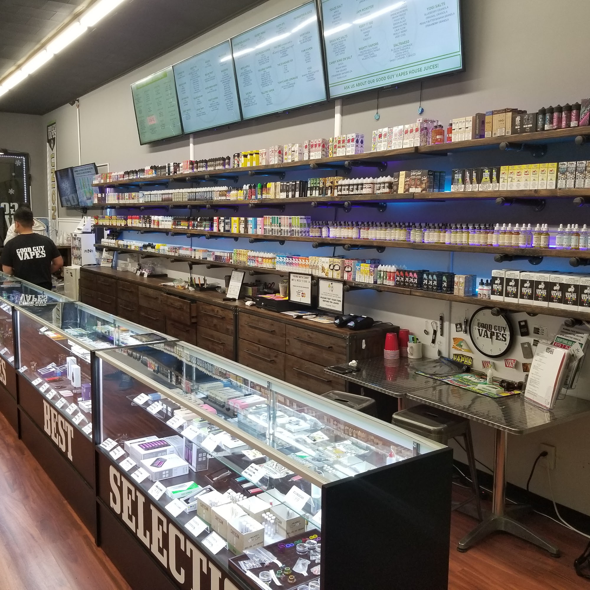 Good Guy Vapes is a one stop shop for all smoking and vaping needs, known for its amazing variety and highest quality products. The shop is decorated very nice and neat with a selection of every item you could want, from vapor products and e-juices to Hookah, Glass, and CBD. The staff are good guys who are very knowledgeable, informative, helpful, and plain cool. Customers leave feeling educated about their choices, praising the amazing and phenomenal flavors. The experience is well worth the visit. The only noted downside is limited nearby parking. With a mindset that customers come first, it is not an ordinary shop but an amazing go-to spot for its valuable knowledge and selection.