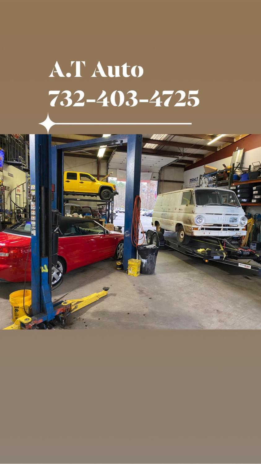 A.T Auto Repair & Tires is a family-owned small business that provides used and new tires, as well as reliable auto repair services. Customers praise the personal touch and honest diagnostics, with affordable prices and quick turnaround. The mechanics are known for their expertise, saving customers' cars and ensuring they drive perfectly. This trustworthy shop is highly recommended for its kind, informative, and honest approach to servicing vehicles.