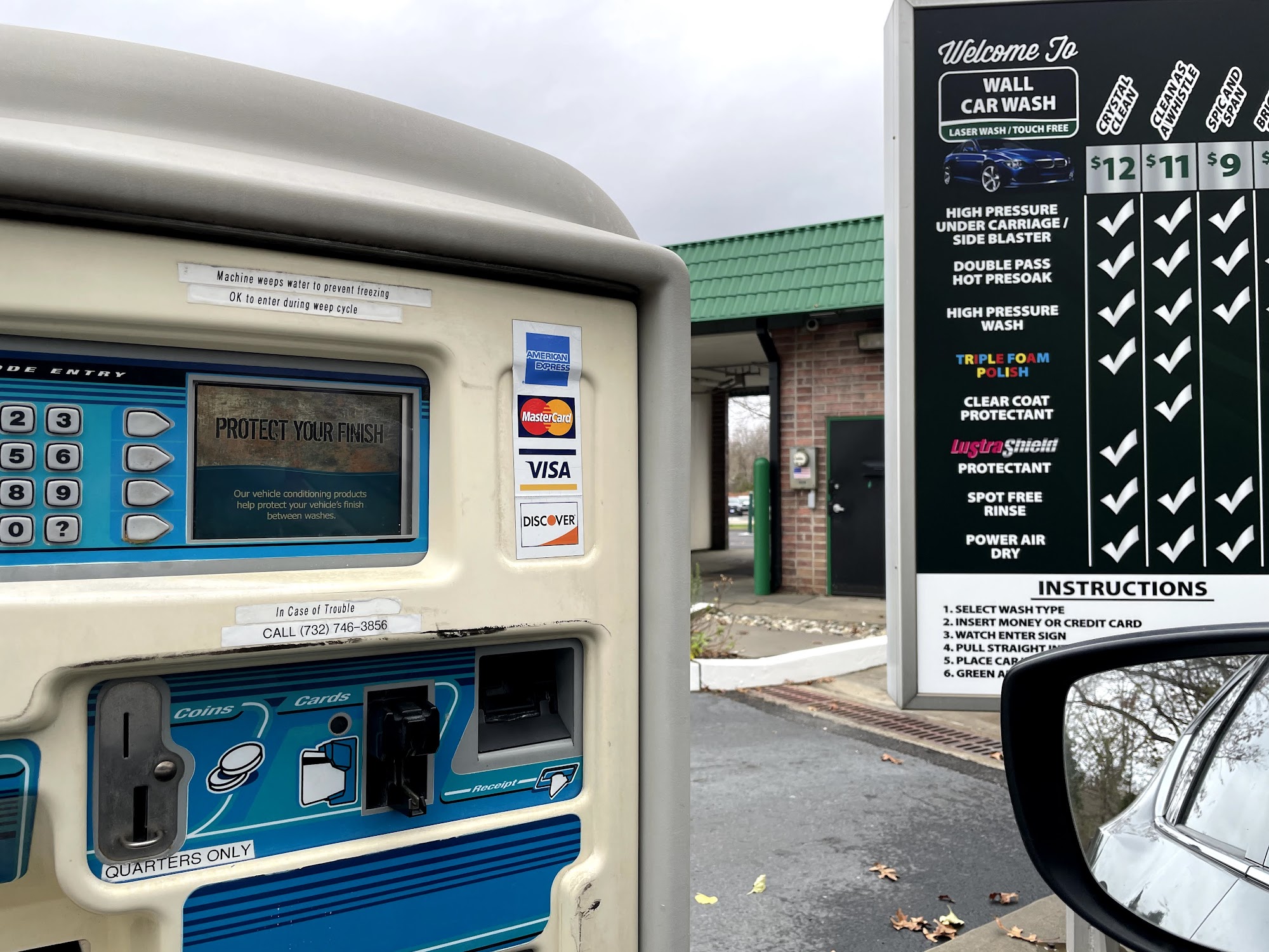 Wall Car Wash offers a touchless automatic system that is great for newer cars and winter cleaning, removing 70% to 90% of dirt, grime, and salt. The cost is very reasonable, with a top option for $12. While it leaves a nice shine, it may not fully clean brake dust or bird poop, and a wipe-down after is recommended to prevent drips. The facility is very well maintained, clean, and worth the occasional wait. The staff is noted for being kind, helpful, and patient, with strong vacuums and quality products.