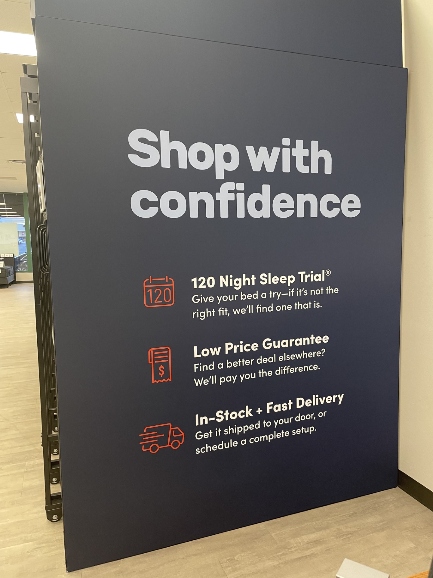 The salesperson was knowledgeable and took the time to show different mattresses, explained each and the differences among them. Also, check the availability of items at the outlet. He really helps narrow down to the best option for us and make the purchase right there