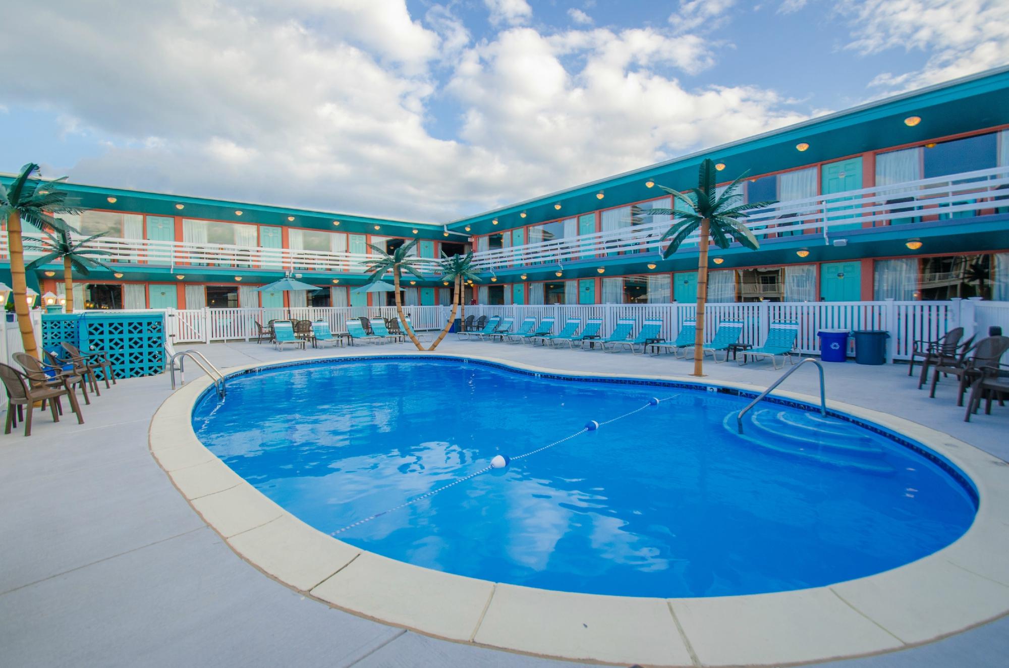 The Dolphin Inn offers an excellent location, just a block away from the boardwalk. The property has a clean and well-maintained pool area that is large enough to accommodate guests comfortably. While the rooms are in need of some renovations, they are clean and suitable for a comfortable stay. The staff is friendly and accommodating, even when guests have unexpected needs, such as getting locked out of their rooms. The inn is conveniently located near various attractions, including great restaurants and a pier, making it a popular choice for both families and couples. The only minor drawback is the loud slamming of the front doors, which can be disruptive in the evenings. Overall, the Dolphin Inn provides a satisfactory experience for its guests, with its prime location and friendly staff being its main highlights.