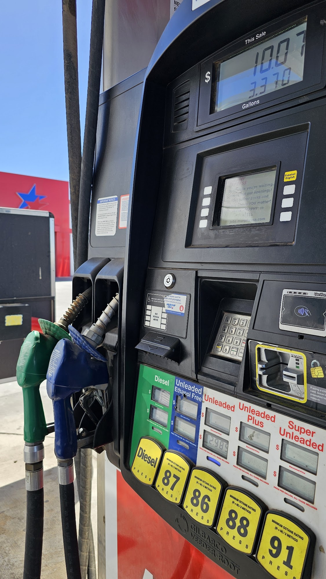The only place I put gas at in Alamogordo. They always have the lowest prices. The store is clean and so are the bathrooms. Their freezers work so the drinks are always ice cold and refreshing. The attendants are always friendly.Remember to join Murphy Rewards to start saving in gas and getting coupons for snacks and stuff.