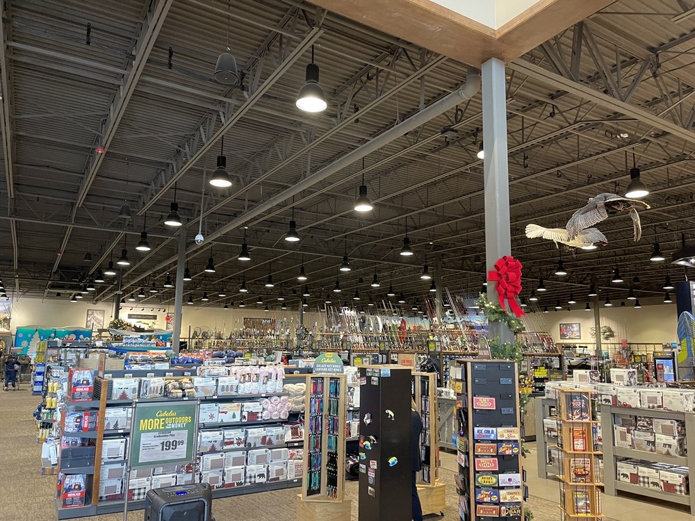 Cabela's is a large store for hunting, fishing, and camping gear, featuring wildlife displays. It carries a huge selection of top brands for clothing, shoes, and outdoor equipment for everyone. The ammo selection is notable. Reviews note the staff is often friendly and provides good service, with helpful associates, though one experience with a return was poor. Prices are viewed as decent but sometimes expensive. The store's credit card is easy to apply for. Overall, it is a well-loved location for outdoor adventures.