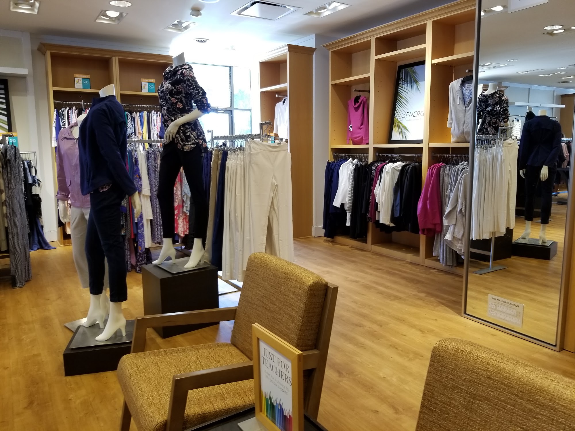 I really like some of their clothes. It's difficult to find what one needs, as instead of grouping items by style, they're grouped by color. 🤷 Generally very overpriced unless you luck into a sale, which brings the prices down to... expensive. Nice service, though.