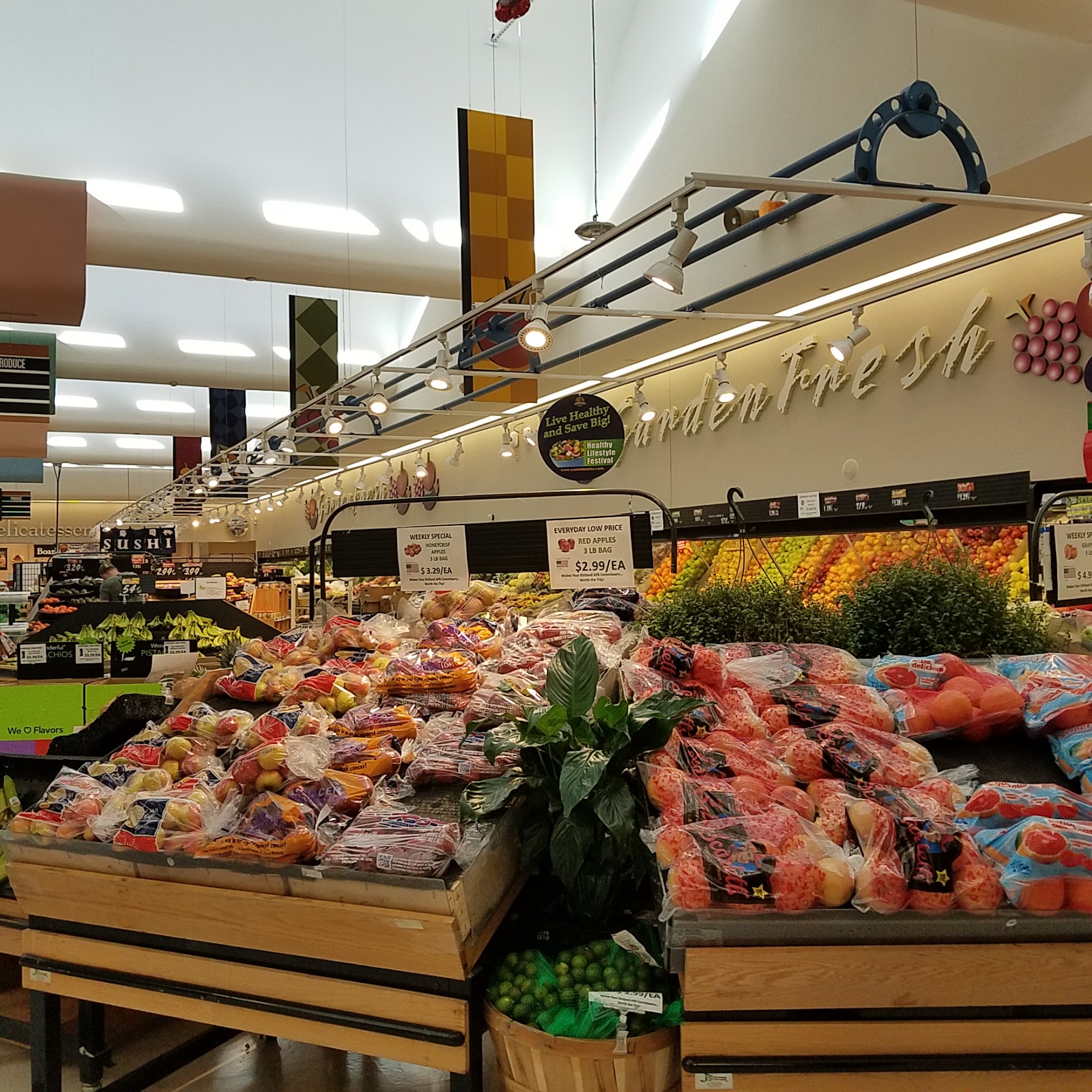 The Kirtland AFB Commissary is a popular grocery destination for military customers, offering a great shopping experience. The service is excellent, with friendly and helpful staff who go above and beyond to assist customers. The store boasts a good selection of fresh meat, deli, and produce departments, with the deli featuring the Boar's Head brand. Shoppers can find cheap food, including affordable kombucha and delicious sushi at amazing prices. The commissary also has a wide variety of energy drinks to choose from. While the produce and meat sections could use a bit more variety, the store is generally well-stocked and can meet most customers' needs. The self-checkout machines may be a bit temperamental, but this doesn't detract from the overall positive experience. The Commissary Corner, located near the frozen food section, offers a variety of snacks and drinks, further enhancing the shopping options. With its great customer service, fresh and affordable products, and convenient layout, the Kirtland AFB Commissary is a go-to destination for military families.