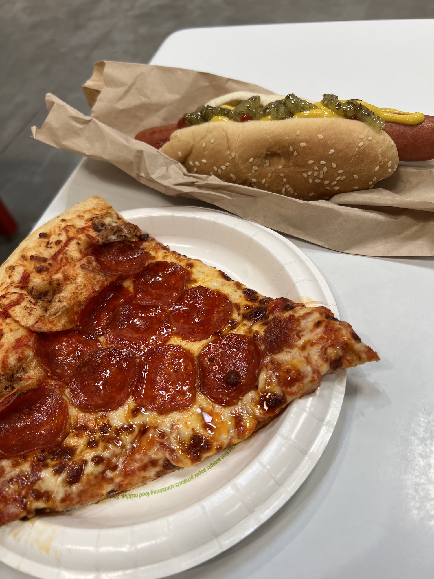 Costco Food Court offers quick and easy dining with picnic bench seating. Known for its excellent value, the all-beef hot dog and drink combo costs just $1.50, making it a popular choice among customers. The large pizza slices, chicken sandwich, Caesar salad with chicken, and soft serve ice cream are also favorites. Although the self-serve mustard and relish station can get messy, it is regularly cleaned by the staff. Customers appreciate the hardworking employees, though they note that service can be slow during busy times. Overall, Costco Food Court is a great spot for affordable snacks and meals, attracting many visitors looking for good food at reasonable prices.