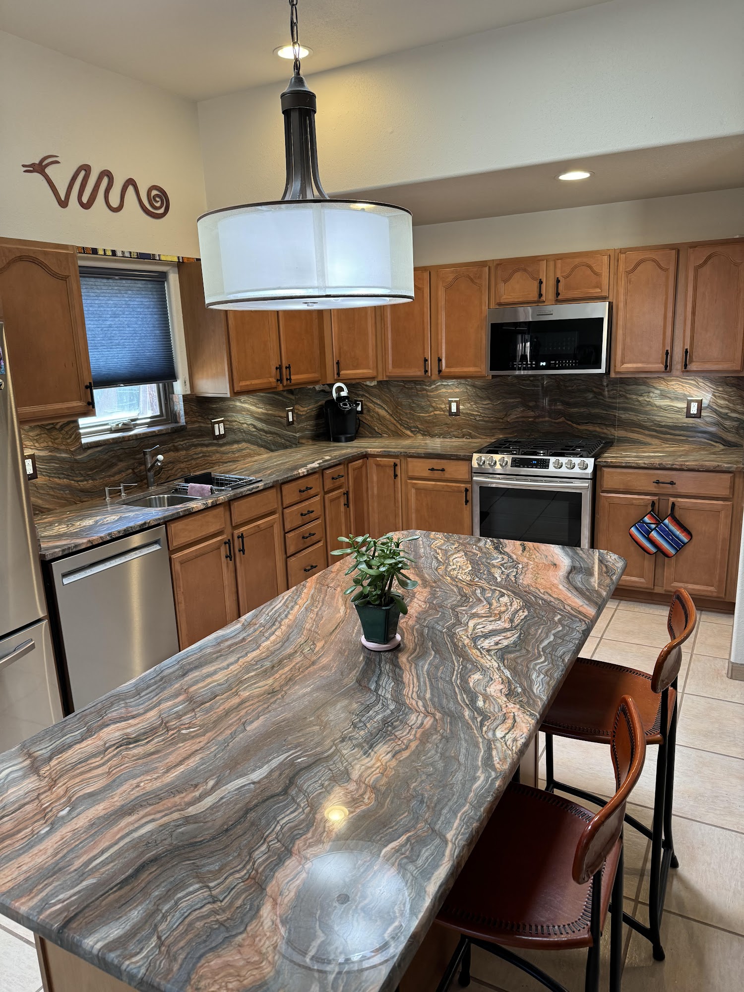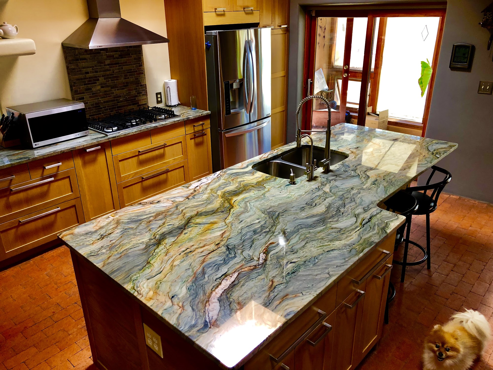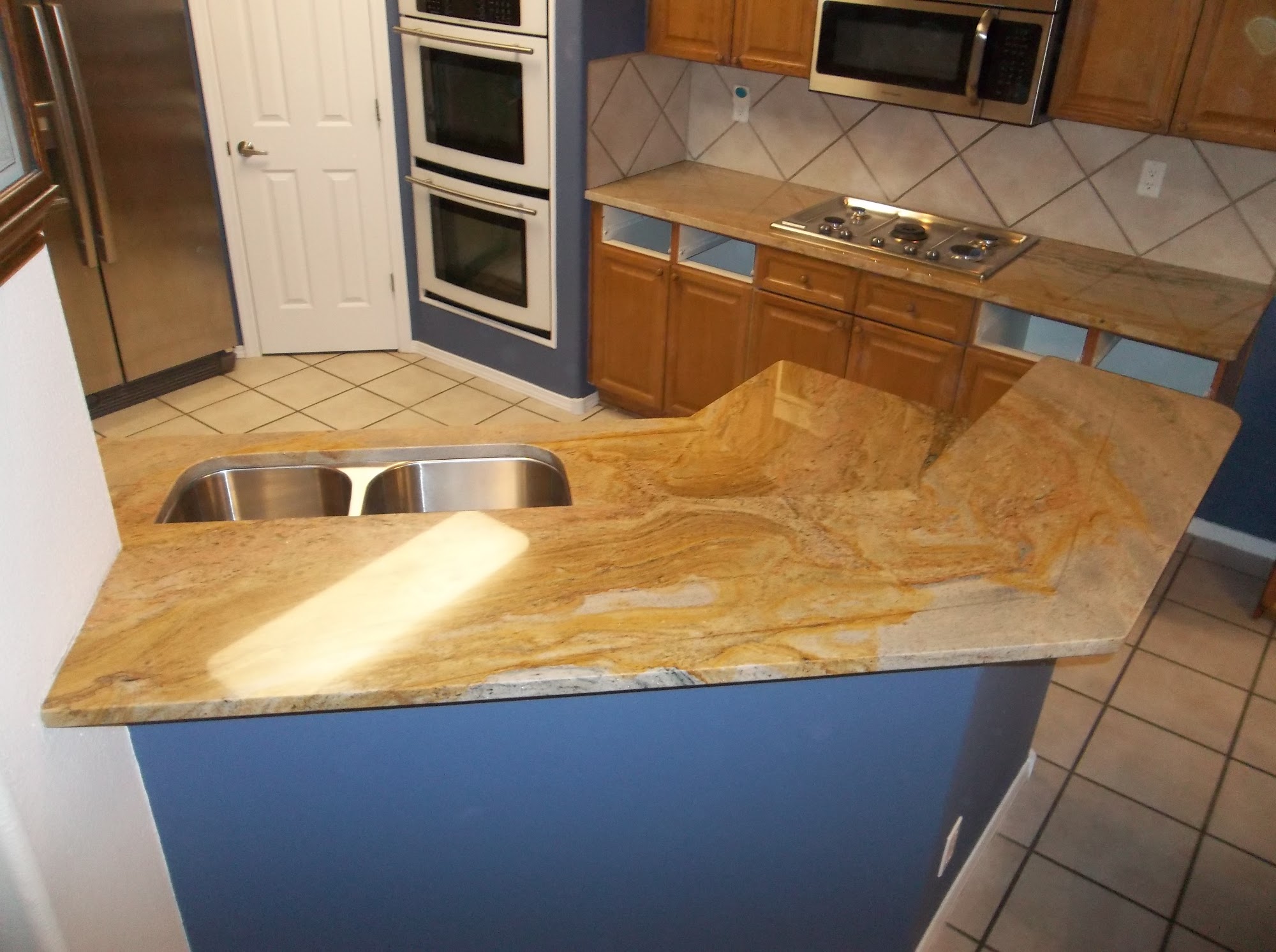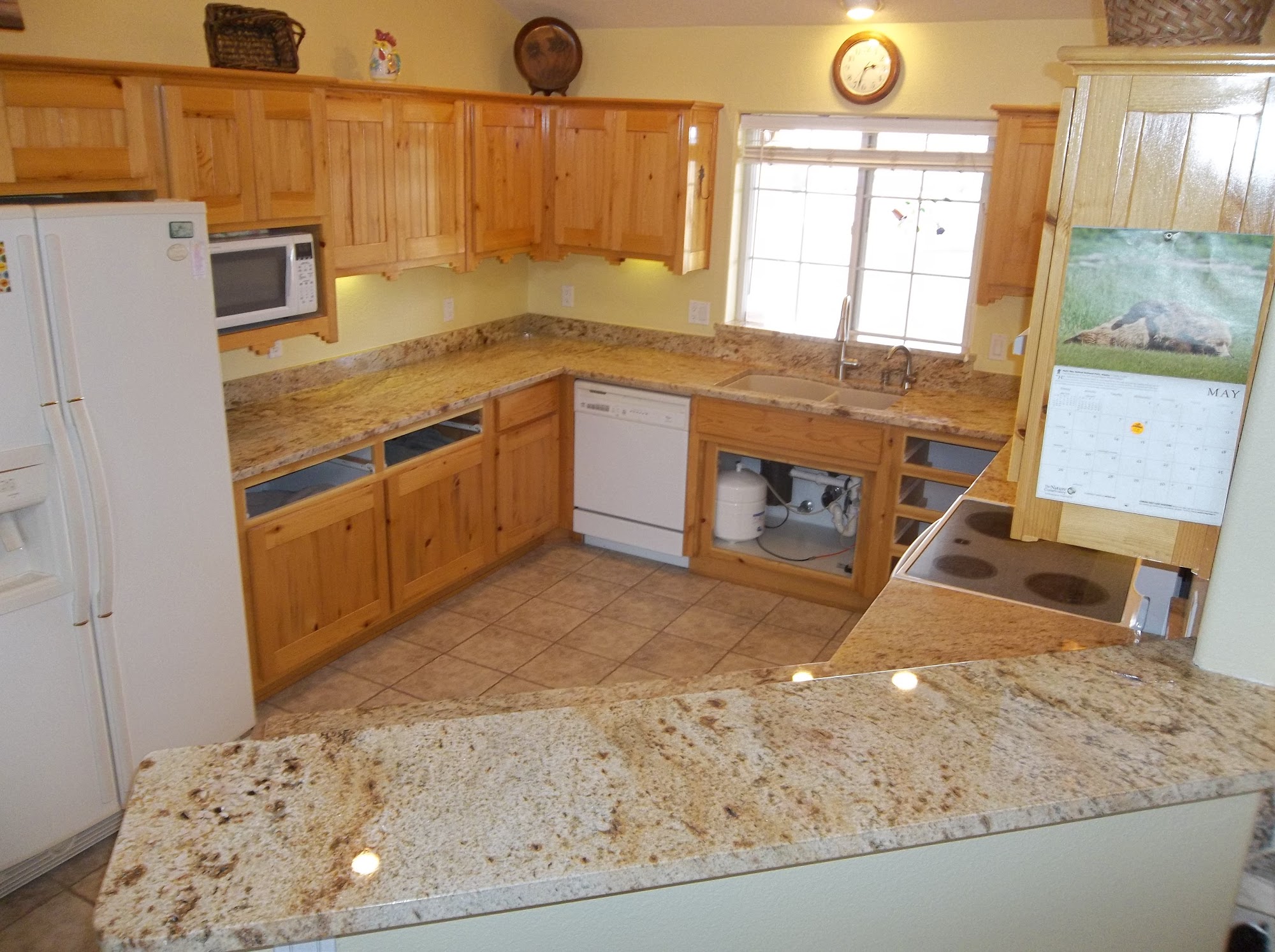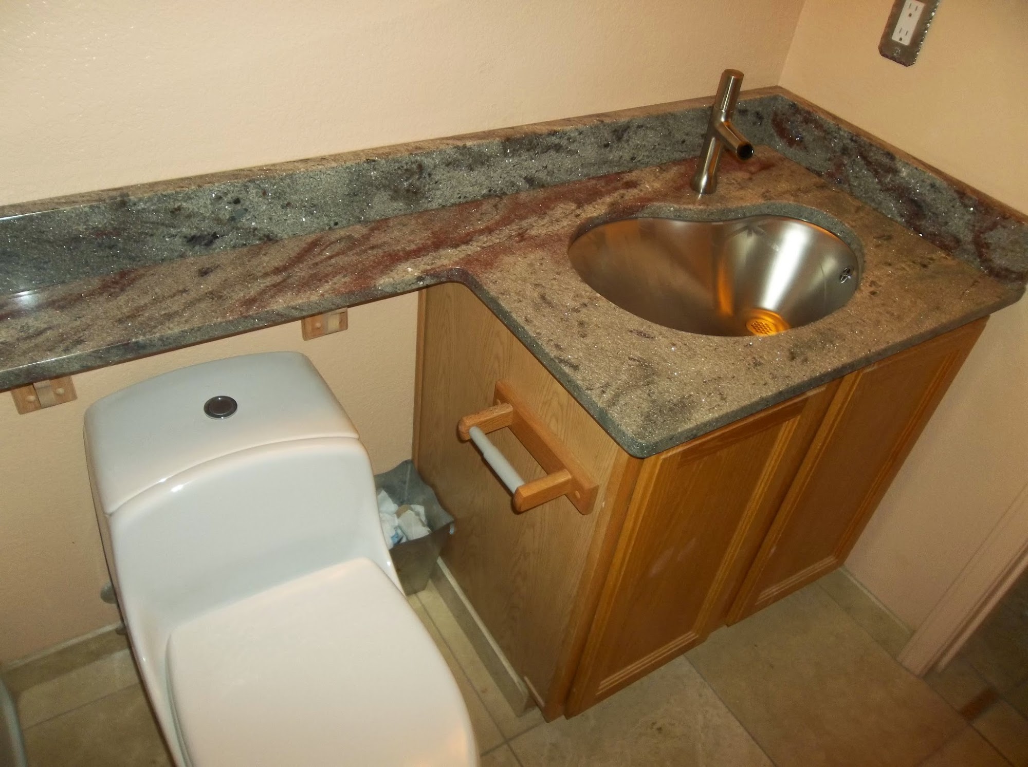 We are a locally owned small family business specializing in Granite, Quartz, Quartzite and Marble Countertops and the installation of them. We have over 75 years combined experience and have been in business since 2011. We offer colors unique to the area you wont find other places. We have directly imported granite cut down to standard sizes 25.5 inches, 36 inches, 44 inches and 51 inches deep by 110 inches - 112 inches long. We take waste out of the material before it is shipped to us. All Pieces are finished with a standard eased edge. We can also buy from other suppliers if you don't find what you're looking for in our showroom. We can fabricate large unfinished slab material as well. Most jobs installed in one day!