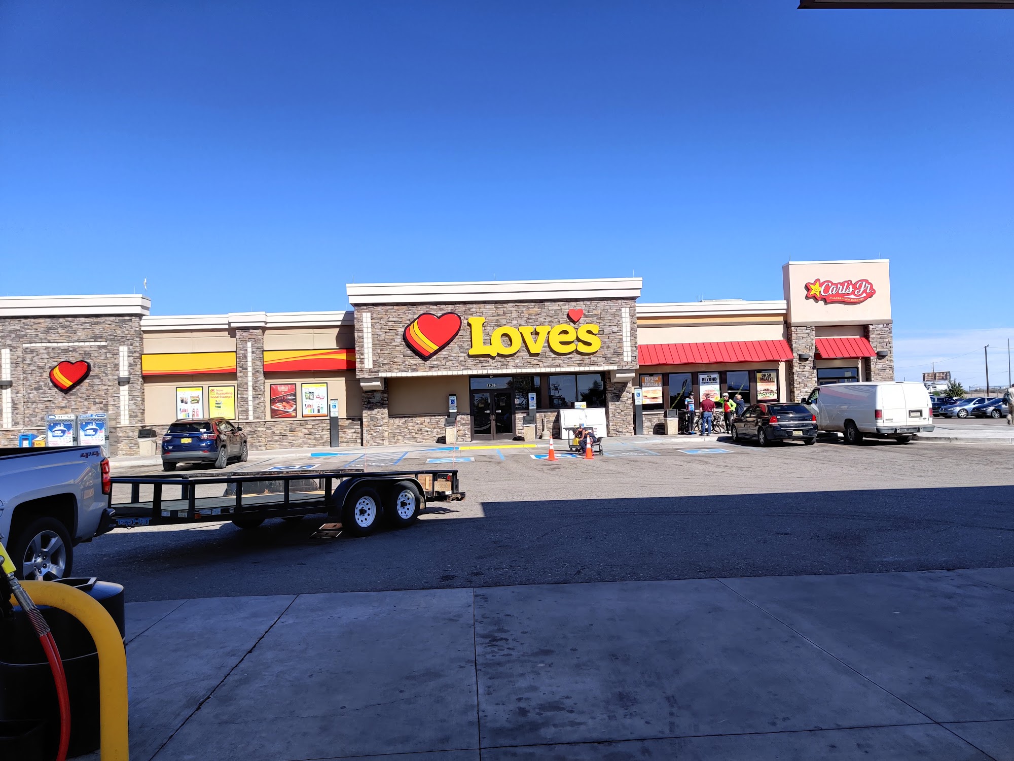 Love's Travel Stop is a clean and well-maintained location with friendly and helpful staff. Customers appreciate the professional and kind service, especially from employees who efficiently assist with transactions and customer needs. The store offers a good variety of merchandise, souvenirs, and meal options, including a well-kept Carl’s Jr. restaurant inside. The fuel prices are competitive, and the fuel area is usually busy but conveniently located off the interstate. The store is generally tidy, with most restrooms in good shape, though some mention a strong smell in the men's room. Staff members are typically polite, with some employees standing out for their helpfulness. Customers feel comfortable parking overnight, as the store allows sleeping in designated spots, and some reports indicate others sleep there too. However, the small size of the gas area can lead to lines and cramped conditions. Overall, Love's Travel Stop offers a convenient, clean, and friendly environment for travelers.