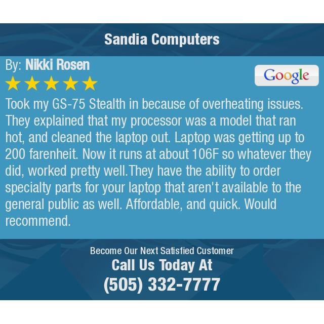 Sandia Computers, established in 1997, is a trusted tech partner known for its exceptional IT services, custom-built systems, desktops, laptops, and expert computer repairs. With over 27 years of experience and more than 40,000 satisfied customers, they cater to a diverse clientele, including IT professionals, government agencies, businesses, students, and tech enthusiasts. Customers consistently praise Sandia Computers for their professionalism, knowledge, and commitment to customer satisfaction. Many highlight the friendly and helpful staff who take the time to explain options clearly, making the experience accessible for all, regardless of technical know-how. From quick fixes like finding a charger to more complex laptop troubleshooting and system upgrades, Sandia Computers is recognized for providing reliable and efficient service at fair prices. The business focuses on meeting customer needs without pushing unnecessary products, ensuring that each client leaves satisfied. Whether needing tech support, hardware upgrades, software solutions, or data recovery, Sandia Computers is a go-to destination for anyone seeking trustworthy and expert assistance in the tech world.