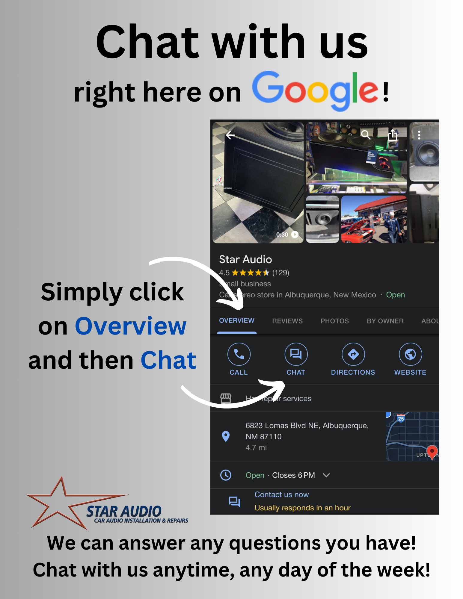 Star Audio provides outstanding and professional service for car audio installations. Customers report excellent customer service, with knowledgeable and understanding staff who answer all questions and walk them through their choices and the operation of new equipment. Installations are described as super professional, fast, smooth, and perfectly clean, leaving no mess. The business offers a great selection of products and performs installations for stereos, speakers, alarms, subs, and amps, including custom boxes. Many note great prices, with some installations even free. Customers are very happy with the results, which sound amazing, and consistently recommend the business, stating they will return for future needs.