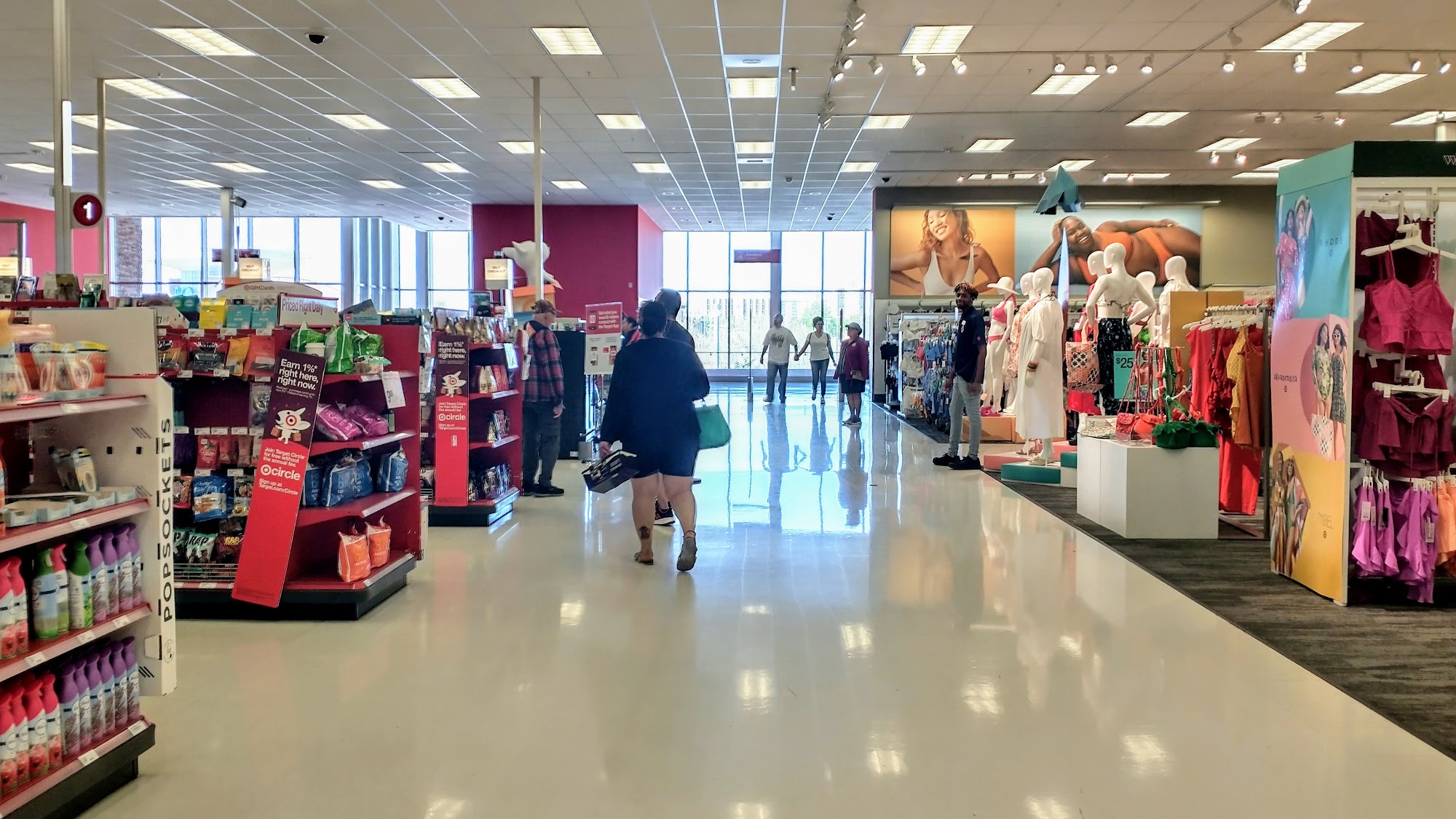 Target is a well-stocked store with a good selection of items, from groceries to furniture. It is conveniently located and usually not too crowded, especially during early mornings. The store maintains a clean environment, and the self-checkout machines are user-friendly and reliable. While many essentials like laundry detergent and deodorant are locked up, which can be inconvenient, the staff is noted for being helpful, attentive, and knowledgeable. Customers appreciate the good customer service they receive, although the store is sometimes understaffed at registers and in aisles. The order pick-up feature is also praised for its convenience. However, there are requests for the return of window views at the Starbucks, which have been closed off since COVID. Overall, this Target location provides a pleasant shopping experience despite some challenges.