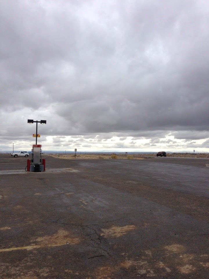 Small gas station but a place for trucks to stop for the night if they need to.